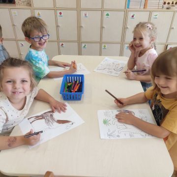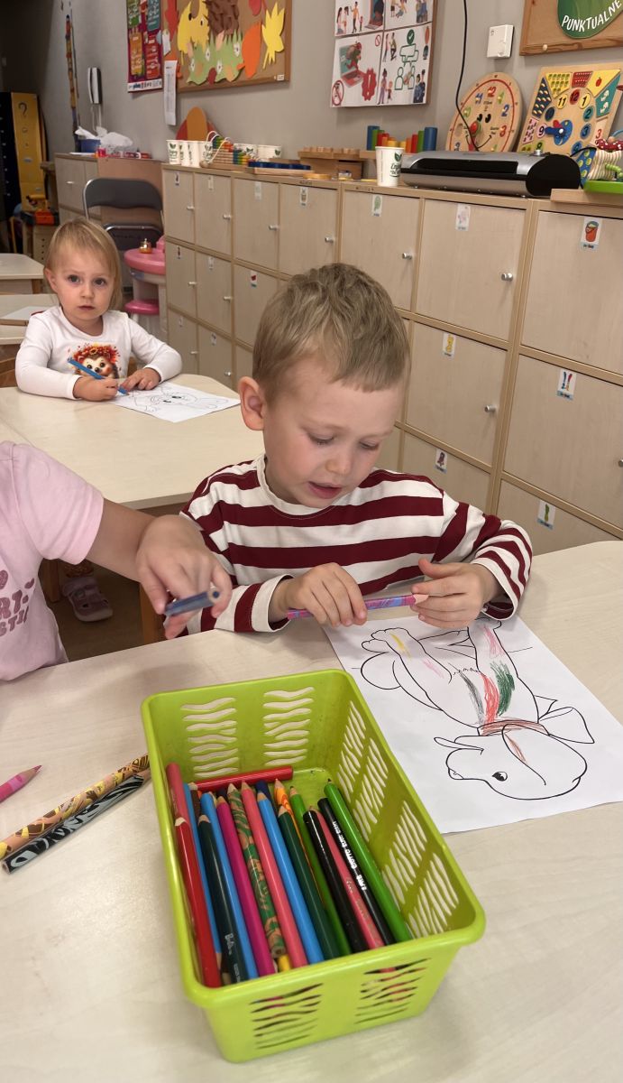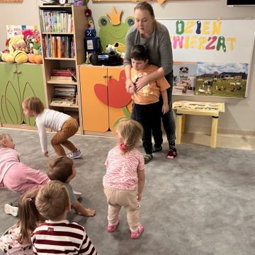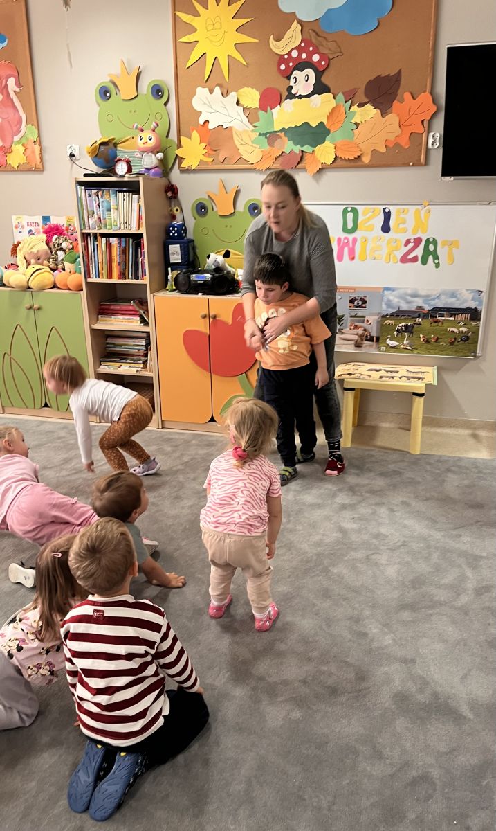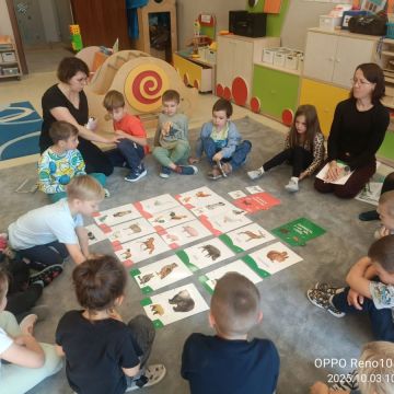 W dniu 3 października 2025 r. obchodziliśmy w naszym Przedszkolu Światowy Dzień Zwierząt, którego celem było uwrażliwienie dzieci na prawa zwierząt, naukę szacunku do nich oraz poznanie podstawowych zasad opieki nad nimi. Rozwijano także w dzieciach postawy empatii wobec zwierząt i zachęcano do ochrony zagrożonych gatunków. Obchodom tego ważnego dnia towarzyszyło mnóstwo wydarzeń. Przedszkolaki aktywnie uczestniczyły w zabawach tematycznych, takich jak rozmowy o ulubionych zwierzętach, pokazy filmów edukacyjnych, po akcje zachęcające do adopcji zwierząt ze schronisk. Dzieci w swoich grupach dzieliły się swoimi historiami o domowych pupilach, opowiadały o swoich ulubieńcach, rozmawiały o tym, czy zwierzę może być przyjacielem człowieka. Nasi Wychowankowie w czasie zabaw mogli „wcielić się” w wybrane przez siebie zwierzę i zaprezentować je grupie. W tym wyjątkowym dniu nie zabrakło także zagadek, filmów edukacyjnych czy układania puzzli związanych ze zwierzętami. Ponadto Panie przygotowały dla swoich Milusińskich zabawy ruchowe nawiązujące do zachowań zwierząt. Na zakończenie zajęć Przedszkolaki wszystkich grup wykonali różnymi technikami prace plastyczne ze zwierzakami w roli głównej. Dzieci z wielkim zapałem uczestniczyły we wszystkich aktywnościach podejmowanych w tym dniu.