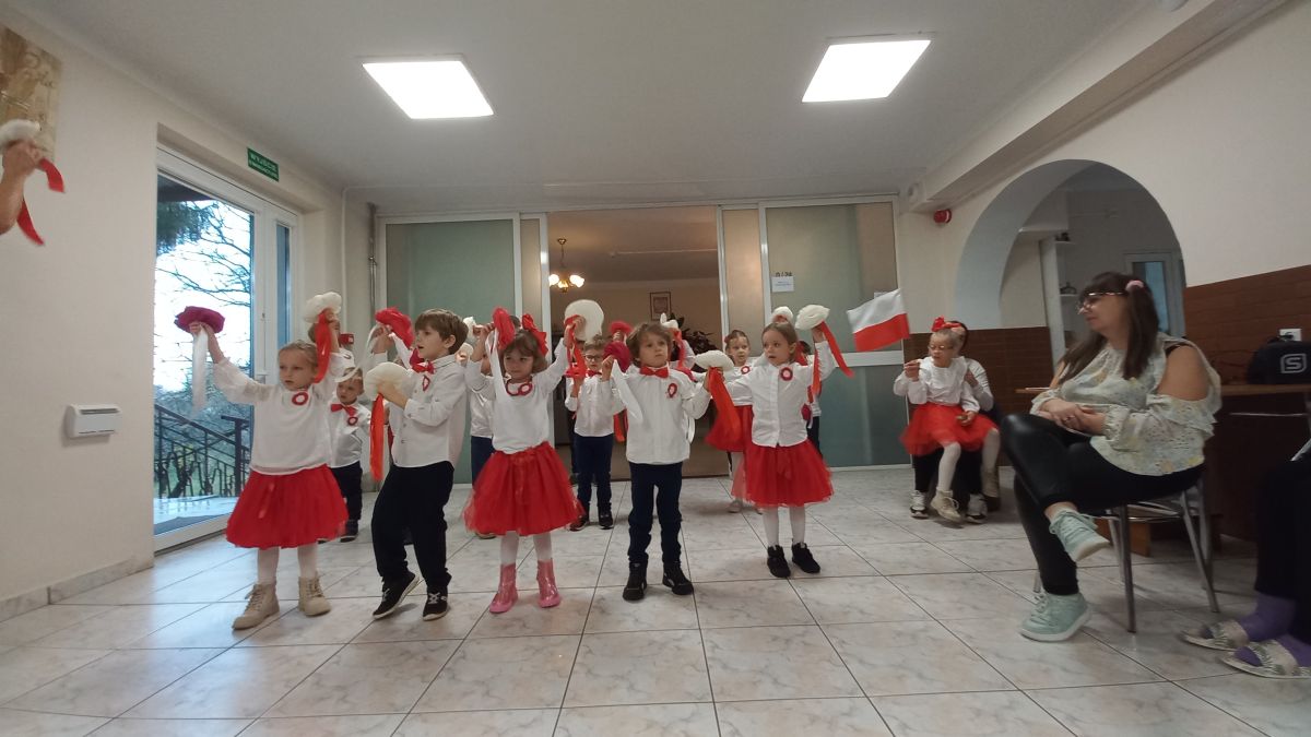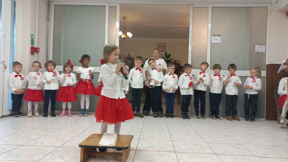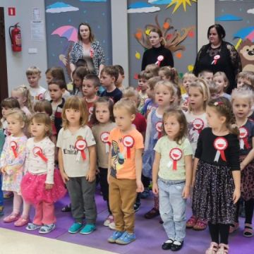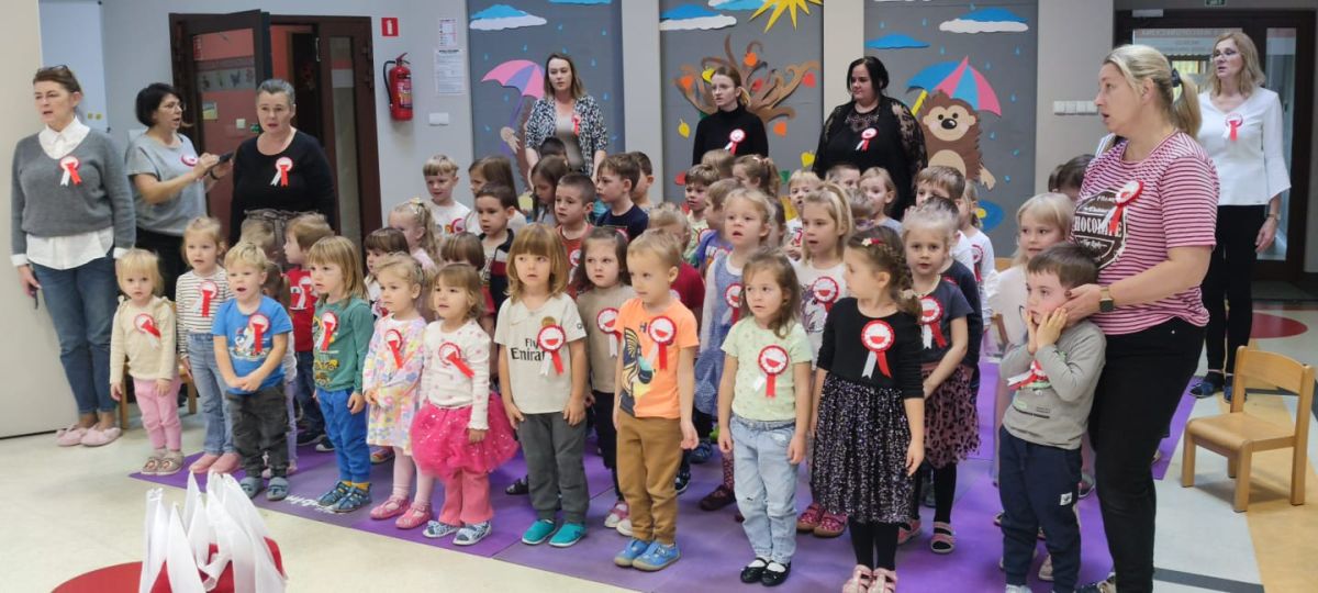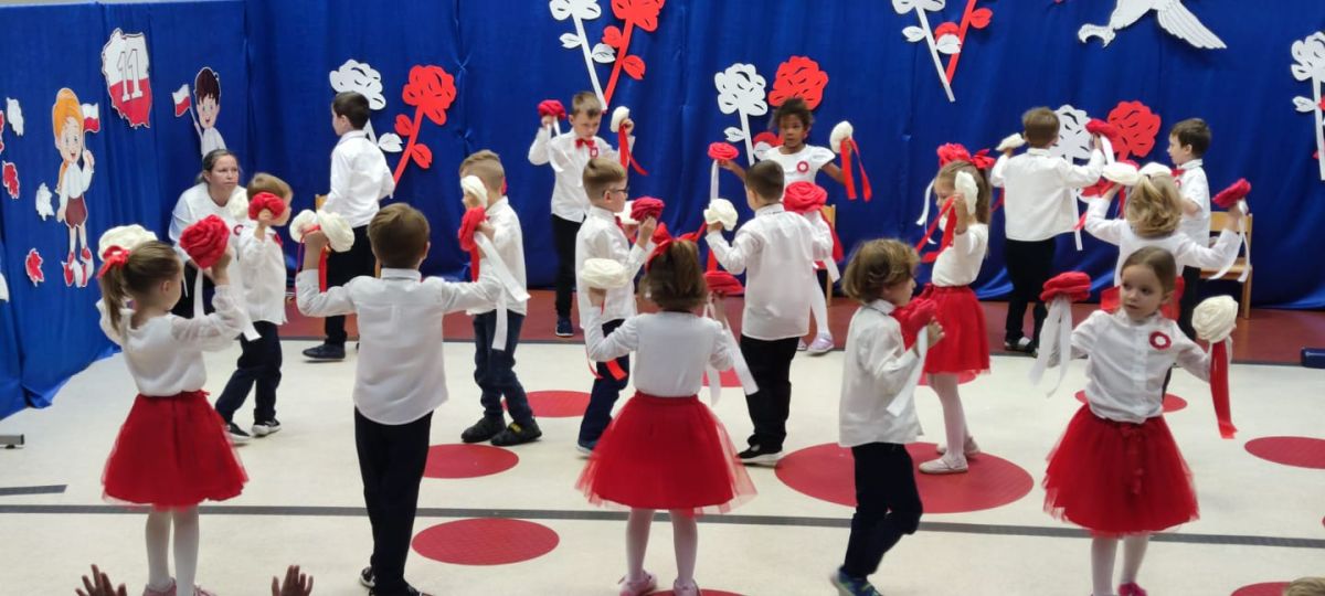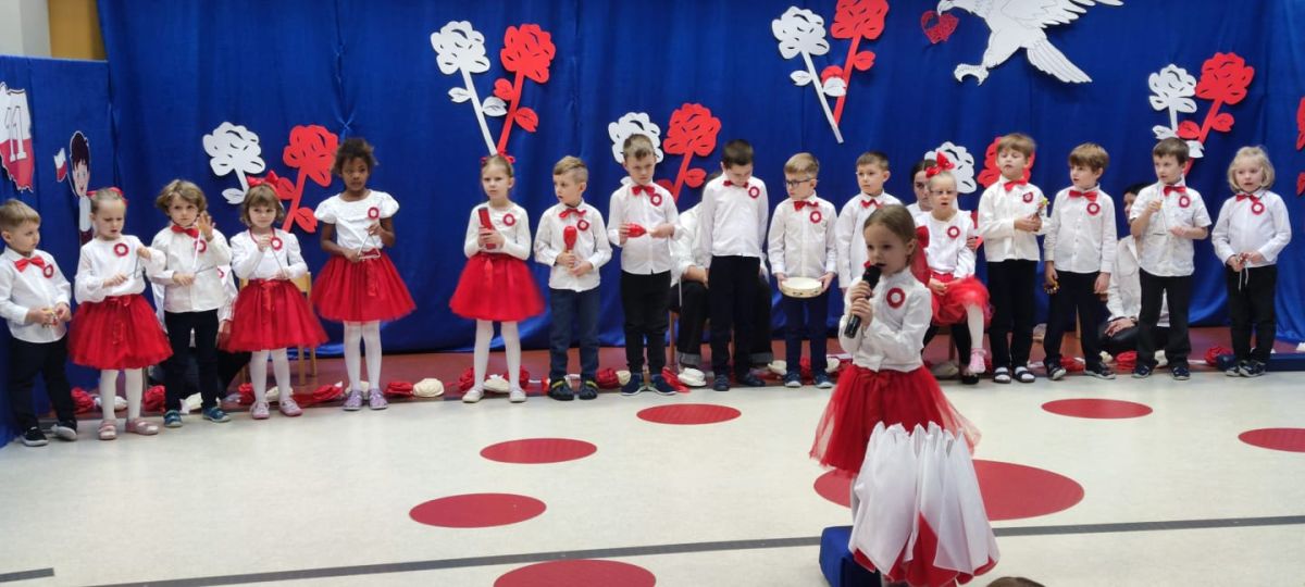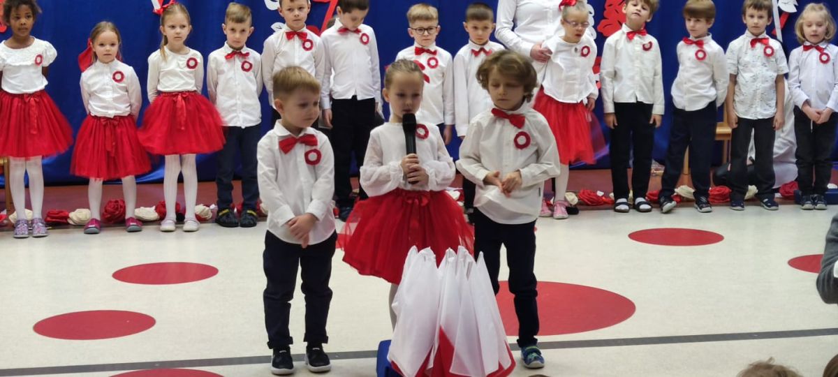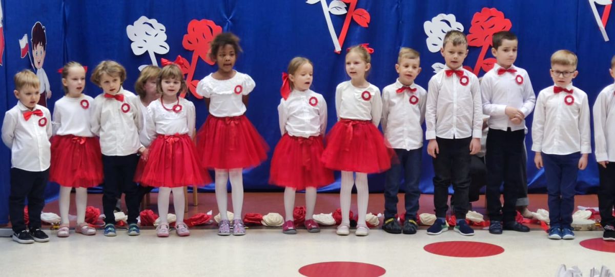 Podobnie jak w latach ubiegłych, w naszym przedszkolu uroczyście obchodziliśmy Święto Niepodległości. Z tej okazji 12 listopada br. odbyła się akademia, przygotowana przez dzieci z grupy „Pszczółek”. Przedszkolaki ubrane w odświętne, biało – czerwone stroje, zaprezentowały swoim koleżankom i kolegom piękną uroczystość, podczas której wyraziły szacunek i miłość do Ojczyzny. Dzieci odśpiewały Hymn Polski oraz „Katechizm młodego Polaka”. Z przejęciem recytowały wiersze patriotyczne. Z dużym zaangażowaniem grały na instrumentach muzycznych – trójkąty, tamburyna, grzechotki oraz śpiewały piosenki o symbolach narodowych czy ważnych wydarzeniach historycznych, dotyczących naszego kraju. Oczywiście nie zabrakło uroczystego, podniosłego tańca z różami w narodowych barwach, który był zwieńczeniem całej uroczystości. Recytatorskie, wokalne i taneczne umiejętności przedszkolaków nagrodzone zostały gromkimi brawami. Na zakończenie akademii, głos zabrała Pani Dyrektor Jolanta Bieniek, dziękując dzieciom i paniom nauczycielkom za przygotowanie uroczystości . W celu kultywowania tradycji współpracy ze środowiskiem lokalnym, Pszczółki wybrały się także z montażem słowno- muzycznym do pensjonariuszy oraz pracowników Domu Pomocy Społecznej przy ul. Sobieskiego, aby Święto Niepodległej Polski uczcić także z naszymi zaprzyjaźnionymi sąsiadami.