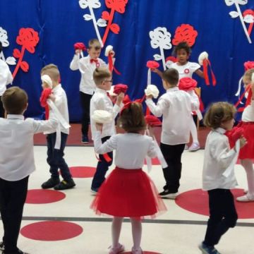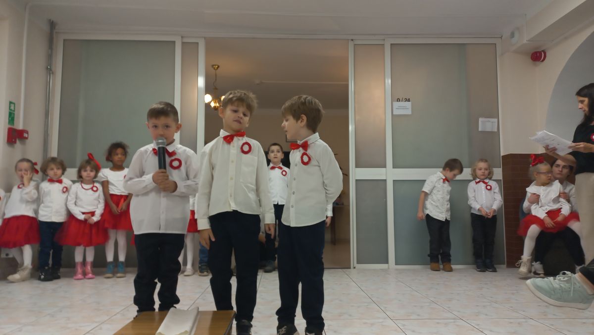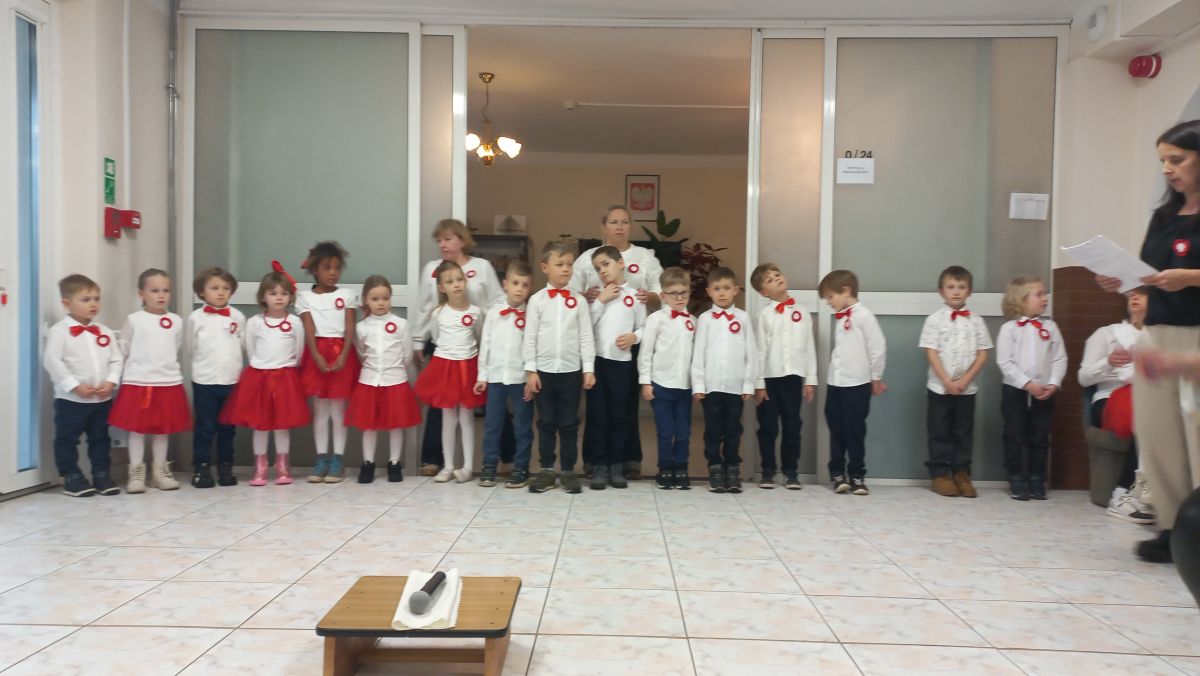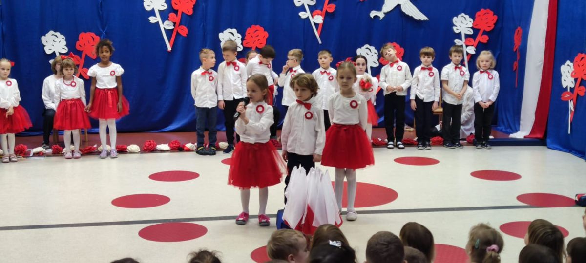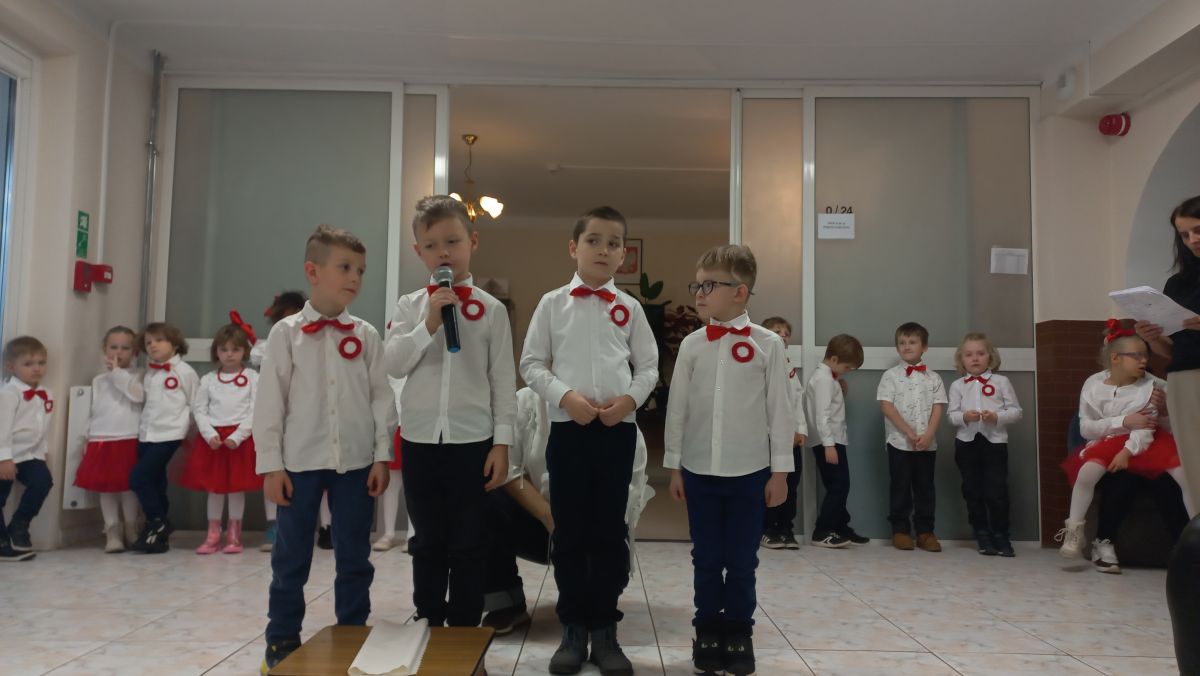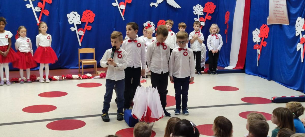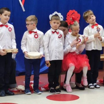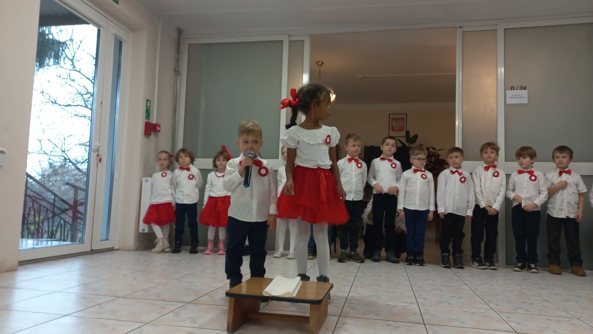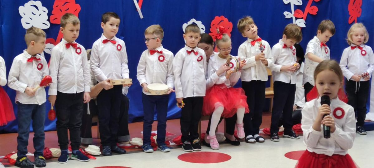Podobnie jak w latach ubiegłych, w naszym przedszkolu uroczyście obchodziliśmy Święto Niepodległości. Z tej okazji 12 listopada br. odbyła się akademia, przygotowana przez dzieci z grupy „Pszczółek”. Przedszkolaki ubrane w odświętne, biało – czerwone stroje, zaprezentowały swoim koleżankom i kolegom piękną uroczystość, podczas której wyraziły szacunek i miłość do Ojczyzny. Dzieci odśpiewały Hymn Polski oraz „Katechizm młodego Polaka”. Z przejęciem recytowały wiersze patriotyczne. Z dużym zaangażowaniem grały na instrumentach muzycznych – trójkąty, tamburyna, grzechotki oraz śpiewały piosenki o symbolach narodowych czy ważnych wydarzeniach historycznych, dotyczących naszego kraju. Oczywiście nie zabrakło uroczystego, podniosłego tańca z różami w narodowych barwach, który był zwieńczeniem całej uroczystości. Recytatorskie, wokalne i taneczne umiejętności przedszkolaków nagrodzone zostały gromkimi brawami. Na zakończenie akademii, głos zabrała Pani Dyrektor Jolanta Bieniek, dziękując dzieciom i paniom nauczycielkom za przygotowanie uroczystości . W celu kultywowania tradycji współpracy ze środowiskiem lokalnym, Pszczółki wybrały się także z montażem słowno- muzycznym do pensjonariuszy oraz pracowników Domu Pomocy Społecznej przy ul. Sobieskiego, aby Święto Niepodległej Polski uczcić także z naszymi zaprzyjaźnionymi sąsiadami.