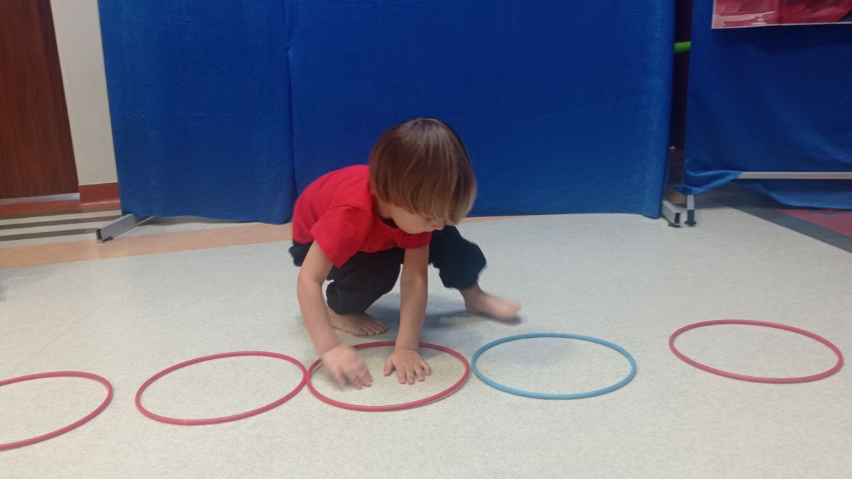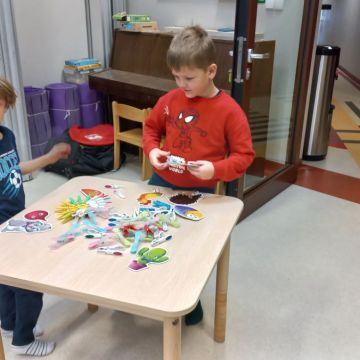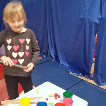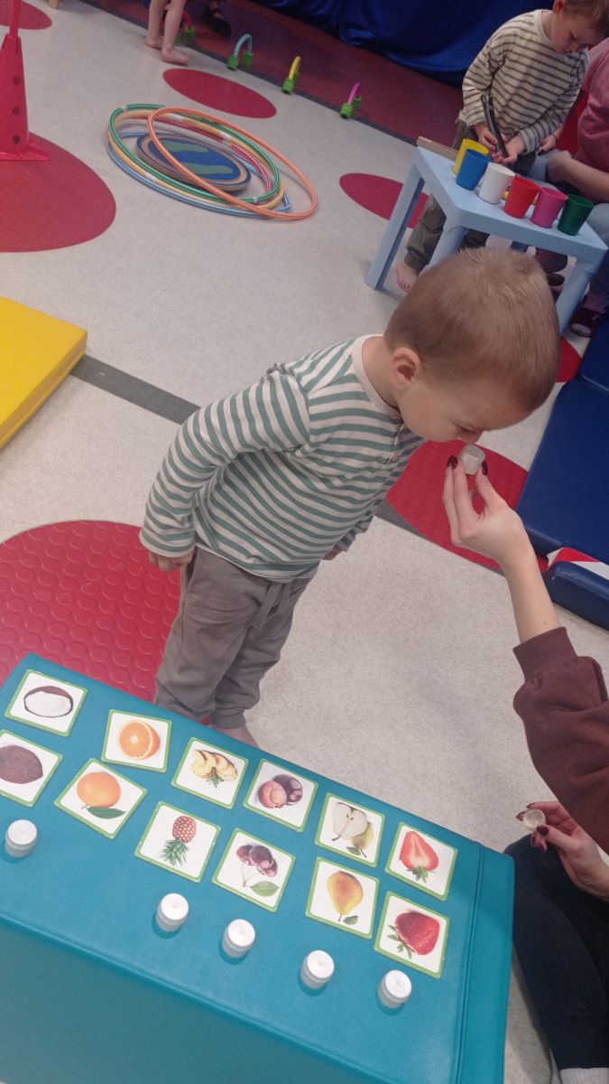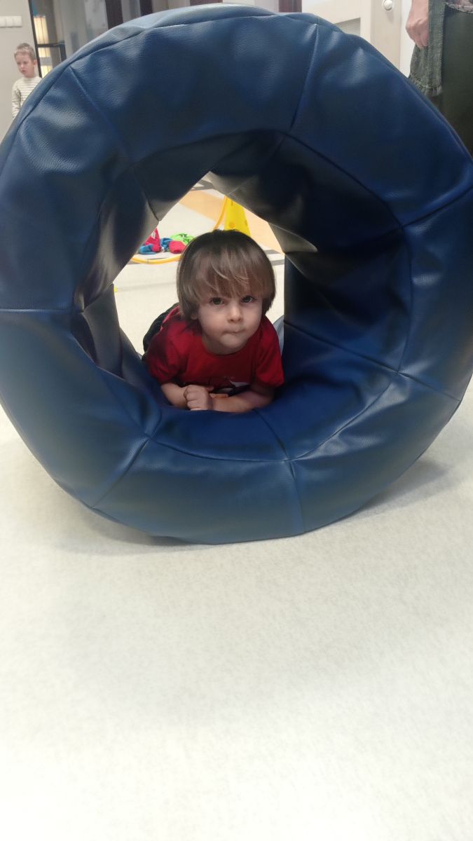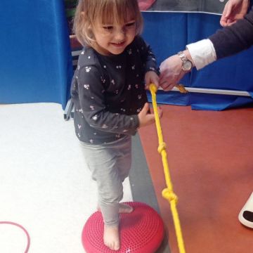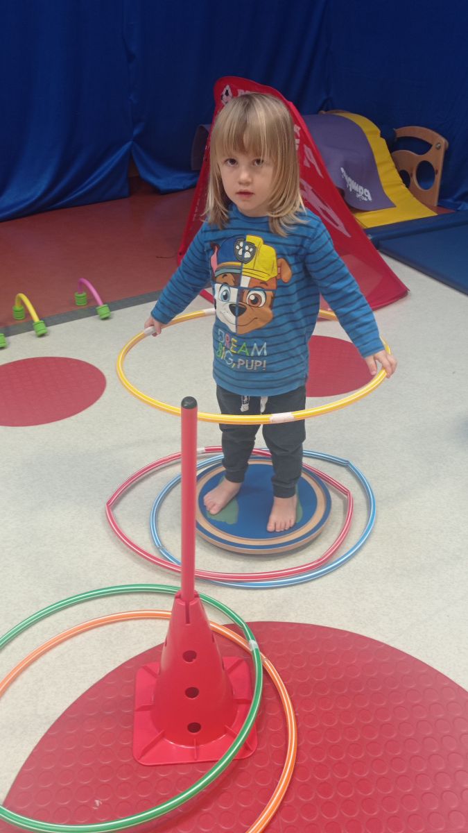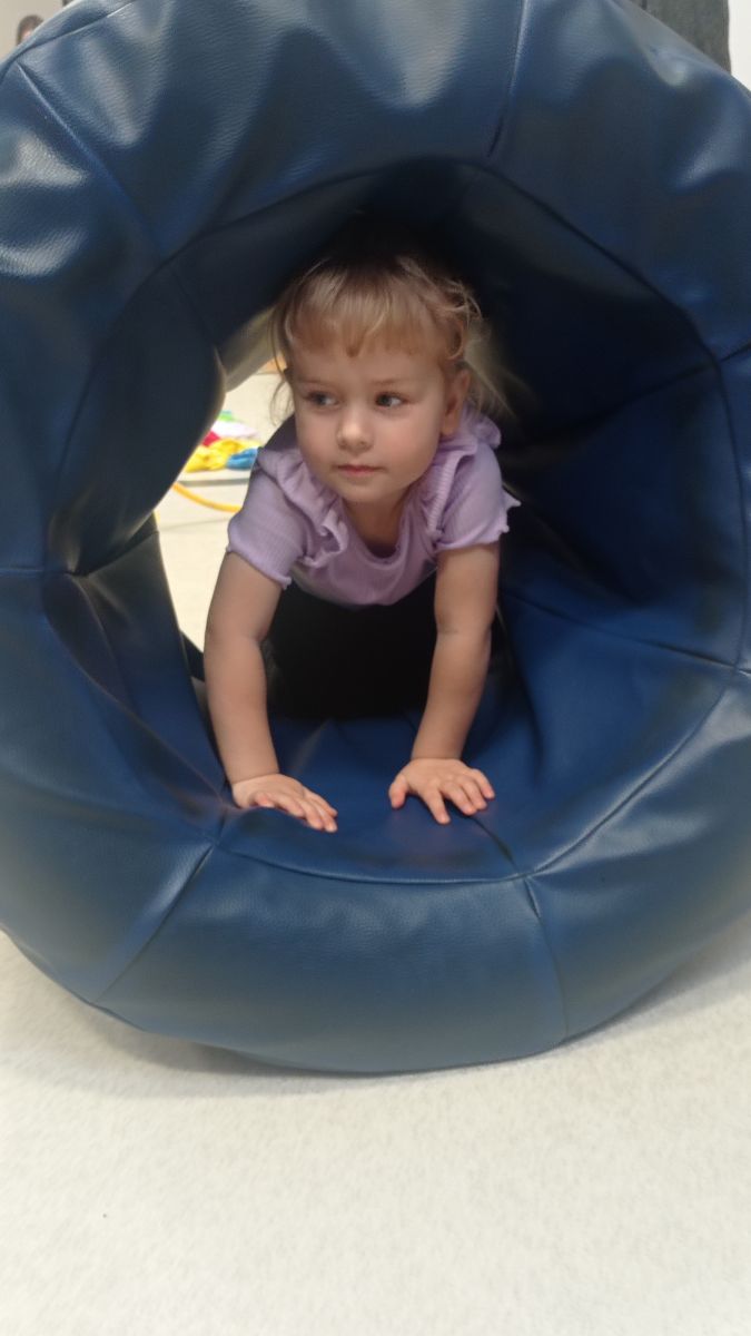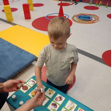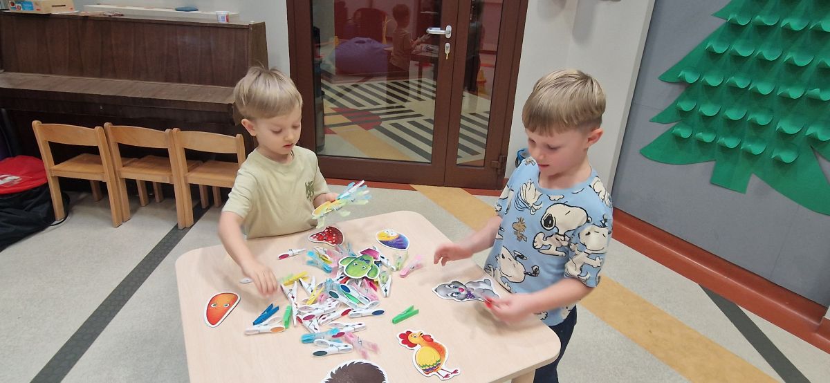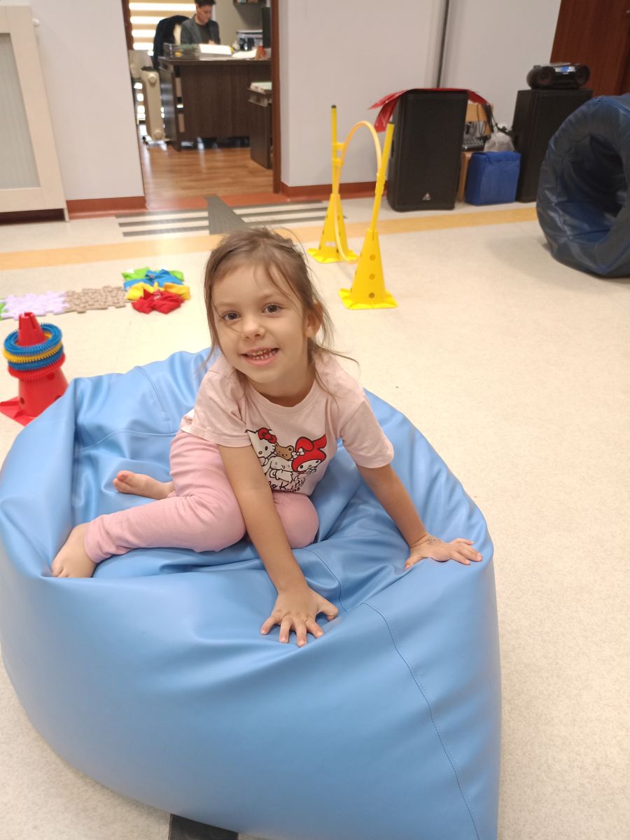 W dniu 24 listopada 2025 roku w Naszym Przedszkolu odbyły się zajęcia sensoryczno-motoryczne „Ruch to zdrowie”. Celem tych zajęć było wielozmysłowe poznawanie świata, czyli odbieranie bodźców różnymi zmysłami. Dodatkowo dzieci usprawniały swoje umiejętności motoryczne, koordynacyjne, równoważne i manualne. Przed wykonaniem ścieżki sensorycznej przedszkolaki wysłuchały krótkiego opowiadania, o tym, jak należy dbać o rozwój fizyczny. Na zajęciach dzieci pokonywały złożony tor przeszkód, podczas którego stymulowały swoje dłonie z użyciem piłeczek sensorycznych o różnym kształcie, wielkości i fakturze; przechodziły po ścieżce fakturowej zakończonej rzutem do celu z wykorzystaniem woreczków gimnastycznych; przechodziły przez obręcz oraz przez beczkę sensoryczną; wsparte na dłoniach i stopach przechodziły po kolorowych kółkach; wchodziły po pochylni wykorzystując linę; za pomocą kija do krykieta i piłeczek trafiały do bramki; segregowały kolorowe piłeczki do pojemników, w tych samych kolorach z wykorzystaniem szczypiec; przekładały obręcz przez całą długość ciała stojąc na berecie sensorycznym i zakładały ją na trzpień; czołgały się pod przeszkodami; przechodziły na czworakach po kołysce równoważnej; rozpoznawały zapachy owoców: gruszka, ananas, wiśnia, pomarańcza, truskawka, kokos i wskazywały rozpoznany owoc na obrazku; manipulowały kostkami sensorycznymi i dobierały je w pary stymulując zmysł słuchu; przechodziły po pufie w dowolny sposób; przechodziły po równoważni z ringiem sensorycznym na głowie; przypinały klamerki od bielizny do twardych przedmiotów: słońce, burak, kaktus, kogut, ptak, marchewka, ryba, królik, muchomor, jeż. W tle słychać było dźwięki muzyki poważnej.