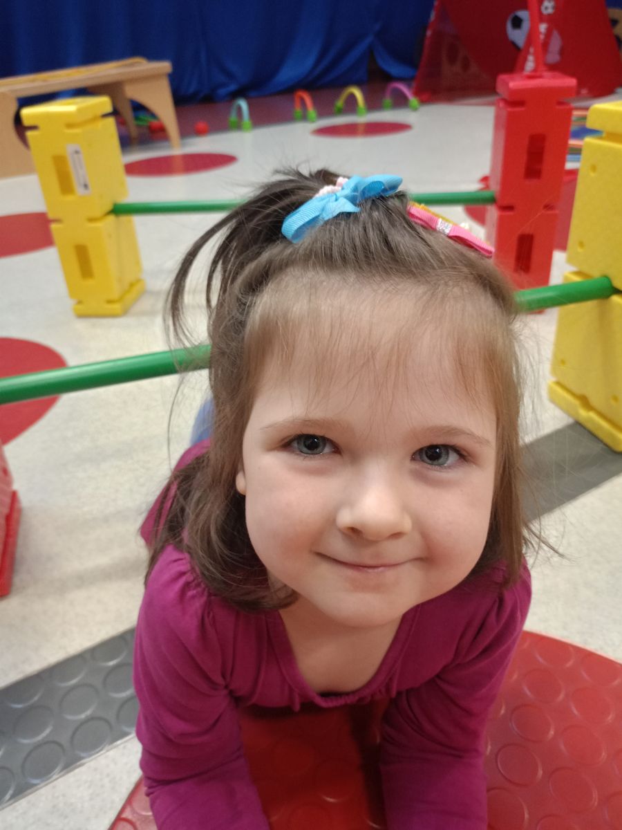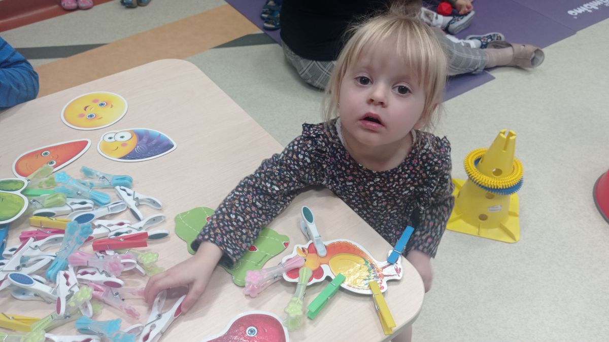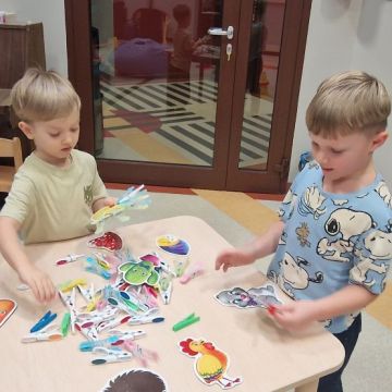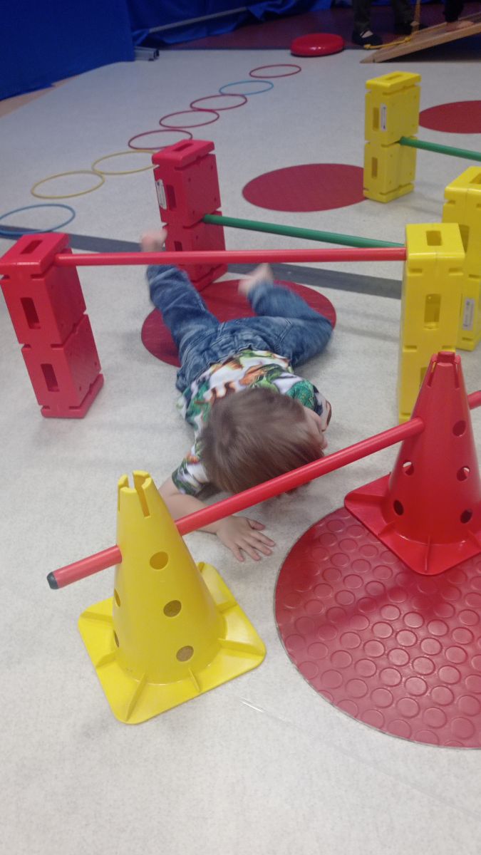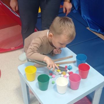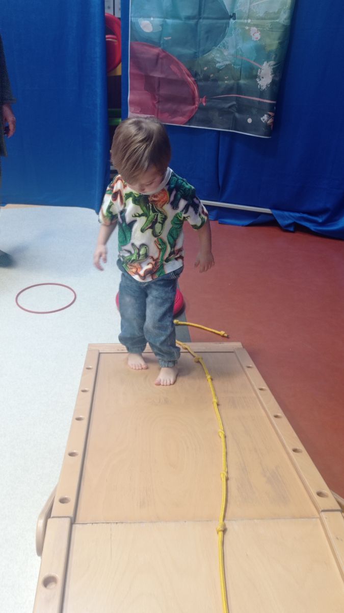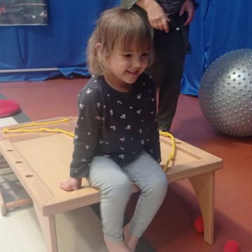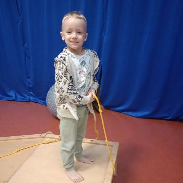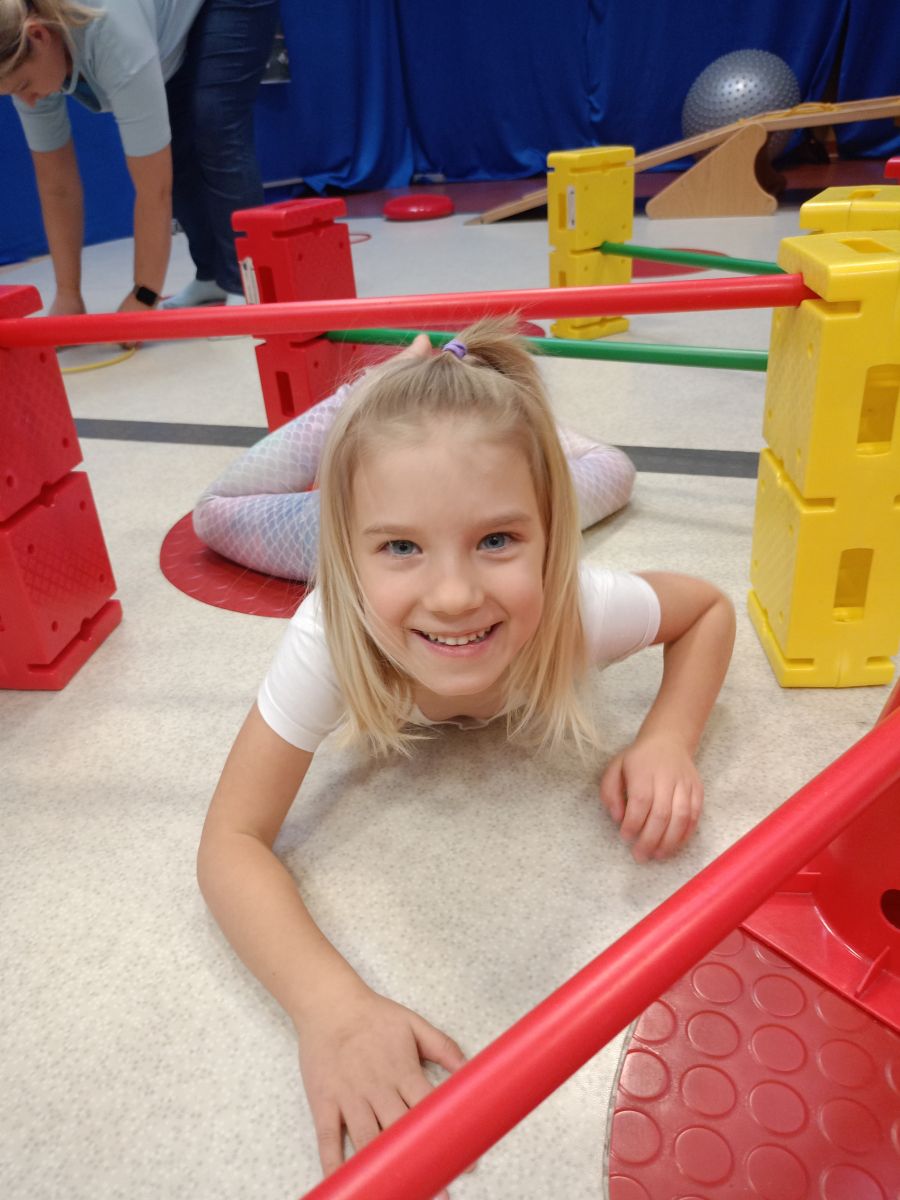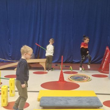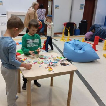 W dniu 24 listopada 2025 roku w Naszym Przedszkolu odbyły się zajęcia sensoryczno-motoryczne „Ruch to zdrowie”. Celem tych zajęć było wielozmysłowe poznawanie świata, czyli odbieranie bodźców różnymi zmysłami. Dodatkowo dzieci usprawniały swoje umiejętności motoryczne, koordynacyjne, równoważne i manualne. Przed wykonaniem ścieżki sensorycznej przedszkolaki wysłuchały krótkiego opowiadania, o tym, jak należy dbać o rozwój fizyczny. Na zajęciach dzieci pokonywały złożony tor przeszkód, podczas którego stymulowały swoje dłonie z użyciem piłeczek sensorycznych o różnym kształcie, wielkości i fakturze; przechodziły po ścieżce fakturowej zakończonej rzutem do celu z wykorzystaniem woreczków gimnastycznych; przechodziły przez obręcz oraz przez beczkę sensoryczną; wsparte na dłoniach i stopach przechodziły po kolorowych kółkach; wchodziły po pochylni wykorzystując linę; za pomocą kija do krykieta i piłeczek trafiały do bramki; segregowały kolorowe piłeczki do pojemników, w tych samych kolorach z wykorzystaniem szczypiec; przekładały obręcz przez całą długość ciała stojąc na berecie sensorycznym i zakładały ją na trzpień; czołgały się pod przeszkodami; przechodziły na czworakach po kołysce równoważnej; rozpoznawały zapachy owoców: gruszka, ananas, wiśnia, pomarańcza, truskawka, kokos i wskazywały rozpoznany owoc na obrazku; manipulowały kostkami sensorycznymi i dobierały je w pary stymulując zmysł słuchu; przechodziły po pufie w dowolny sposób; przechodziły po równoważni z ringiem sensorycznym na głowie; przypinały klamerki od bielizny do twardych przedmiotów: słońce, burak, kaktus, kogut, ptak, marchewka, ryba, królik, muchomor, jeż. W tle słychać było dźwięki muzyki poważnej.