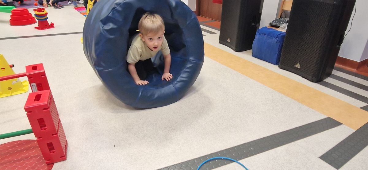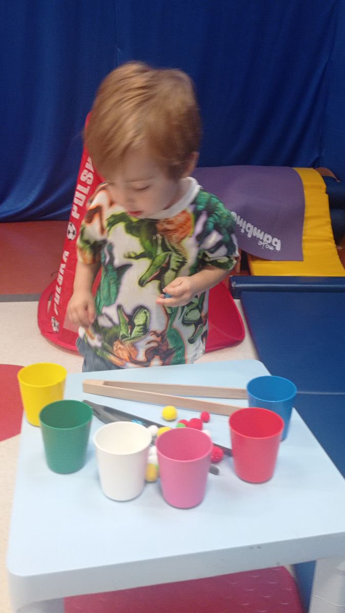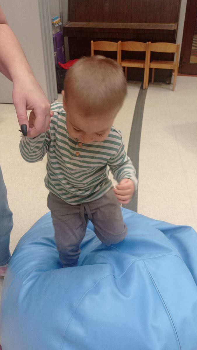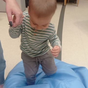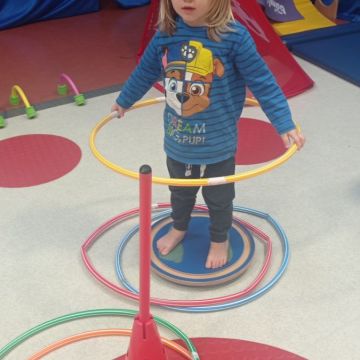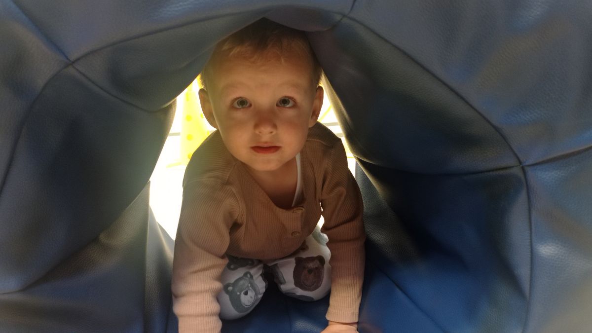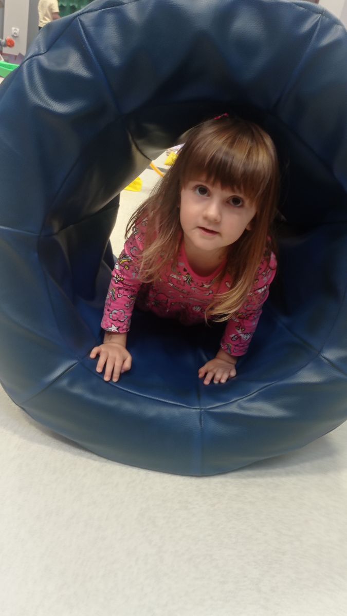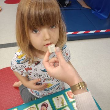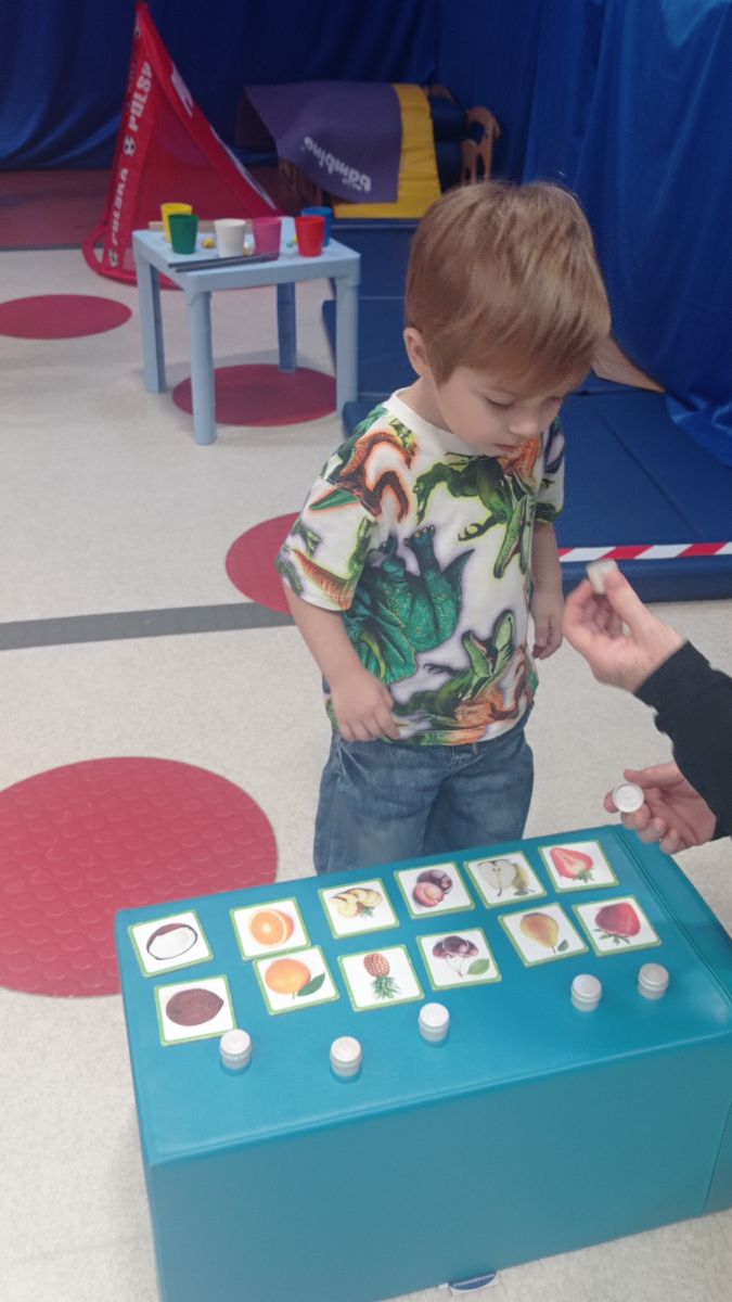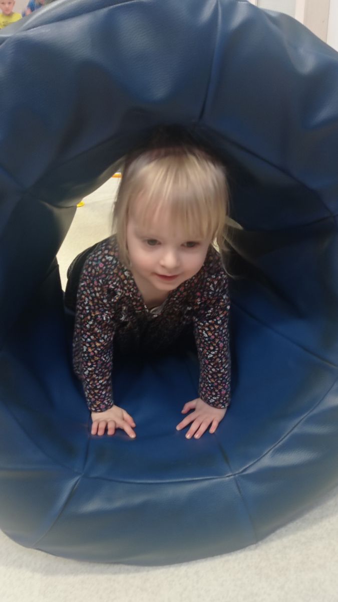 W dniu 24 listopada 2025 roku w Naszym Przedszkolu odbyły się zajęcia sensoryczno-motoryczne „Ruch to zdrowie”. Celem tych zajęć było wielozmysłowe poznawanie świata, czyli odbieranie bodźców różnymi zmysłami. Dodatkowo dzieci usprawniały swoje umiejętności motoryczne, koordynacyjne, równoważne i manualne. Przed wykonaniem ścieżki sensorycznej przedszkolaki wysłuchały krótkiego opowiadania, o tym, jak należy dbać o rozwój fizyczny. Na zajęciach dzieci pokonywały złożony tor przeszkód, podczas którego stymulowały swoje dłonie z użyciem piłeczek sensorycznych o różnym kształcie, wielkości i fakturze; przechodziły po ścieżce fakturowej zakończonej rzutem do celu z wykorzystaniem woreczków gimnastycznych; przechodziły przez obręcz oraz przez beczkę sensoryczną; wsparte na dłoniach i stopach przechodziły po kolorowych kółkach; wchodziły po pochylni wykorzystując linę; za pomocą kija do krykieta i piłeczek trafiały do bramki; segregowały kolorowe piłeczki do pojemników, w tych samych kolorach z wykorzystaniem szczypiec; przekładały obręcz przez całą długość ciała stojąc na berecie sensorycznym i zakładały ją na trzpień; czołgały się pod przeszkodami; przechodziły na czworakach po kołysce równoważnej; rozpoznawały zapachy owoców: gruszka, ananas, wiśnia, pomarańcza, truskawka, kokos i wskazywały rozpoznany owoc na obrazku; manipulowały kostkami sensorycznymi i dobierały je w pary stymulując zmysł słuchu; przechodziły po pufie w dowolny sposób; przechodziły po równoważni z ringiem sensorycznym na głowie; przypinały klamerki od bielizny do twardych przedmiotów: słońce, burak, kaktus, kogut, ptak, marchewka, ryba, królik, muchomor, jeż. W tle słychać było dźwięki muzyki poważnej.