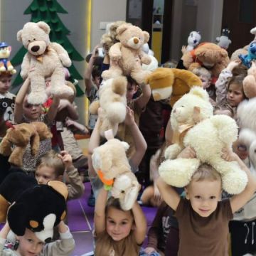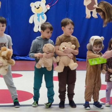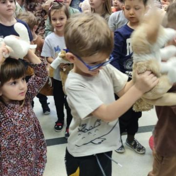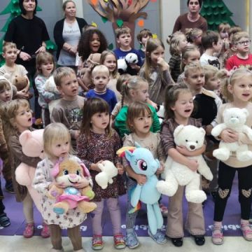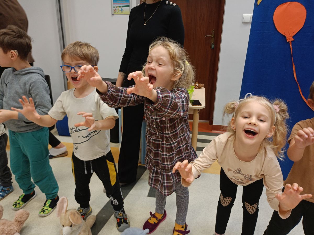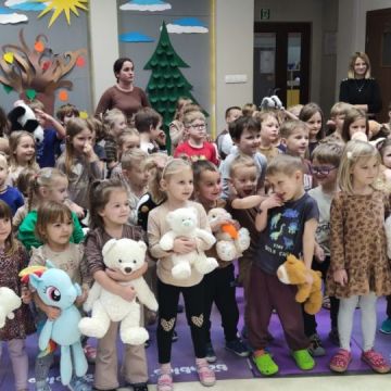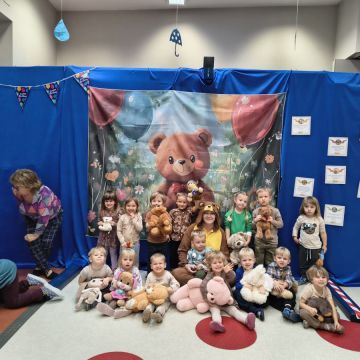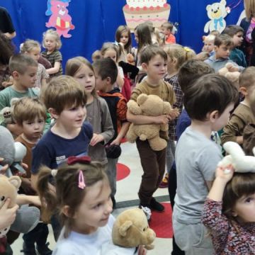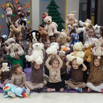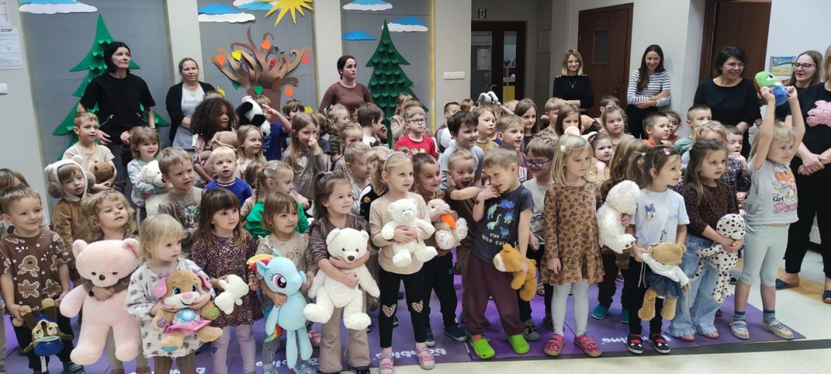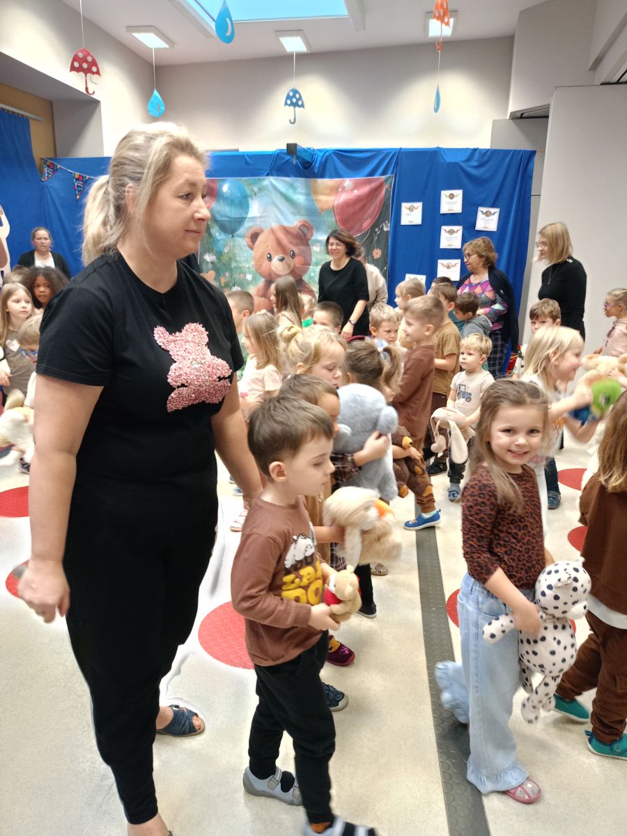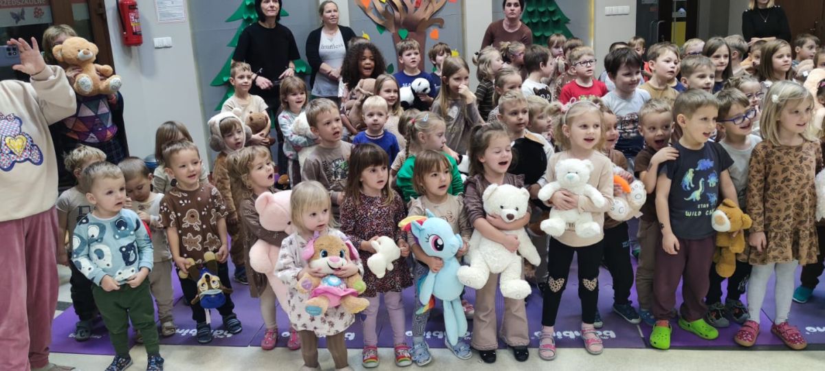 Mały, duży, bury, kolorowy, mięciutki, z kokardką lub w kubraczku — zawsze uroczy i kochany… Pluszowy Miś, przyjaciel z dzieciństwa. Któż z nas nie przytulał go przed snem lub w chwilach smutku? Od pokoleń pozostaje jedną z najpopularniejszych zabawek w Europie, a jego historia sięga XIX wieku! Pluszowe Misie to wierni towarzysze dzieci, powiernicy sekretów i niezawodni pocieszyciele. Często pojawiają się także jako bohaterowie bajek, filmów i piosenek. Wśród najbardziej znanych znajdują się m.in. Kubuś Puchatek, Coralgol, Paddington, Miś Uszatek, Yogi, Rupert, Brat Niedźwiedź, Mały Miś, Troskliwe Misie czy Gumisie. Trudno wyobrazić sobie świat bez tego łagodnego, sympatycznego bohatera. Święto Pluszowego Misia zostało ustanowione w 2002 roku w setną rocznicę powstania tej wyjątkowej zabawki. W związku z tym 25 listopada 2025 r. w naszym przedszkolu obchodziliśmy „Dzień Pluszowego Misia”. Podczas zajęć w sali wielofunkcyjnej dzieci poznały historię narodzin tej najbardziej kochanej maskotki. Dowiedziały się, że wszystko zaczęło się w 1902 roku za sprawą prezydenta Stanów Zjednoczonych — Teodora Roosevelta, który podczas polowania stanął w obronie małego niedźwiadka postrzelonego przez myśliwych. Wzruszająca postawa prezydenta stała się inspiracją do stworzenia pierwszego pluszowego misia, a opis i ilustracje tej historii szybko trafiły do prasy i książek. W kolejnych latach powstało wiele bajek i filmów, w których głównym bohaterem stał się Miś. Choć świat zabawek nieustannie się zmienia, moda na misie wciąż trwa. Pluszowy jubilat pozostaje jedną z najbardziej lubianych dziecięcych zabawek na świecie. Jego ponadczasowość sprawia, że bajki o misiach od lat cieszą kolejne pokolenia. Sam pluszak stał się symbolem dobra, ciepła, miłości i opiekuńczości — wartości, których wszyscy potrzebujemy. Dzień Pluszowego Misia był także okazją do pomagania! Nasze przedszkole włączyło się w ogólnopolską zbiórkę zabawek organizowaną przez Fundację „Mam Marzenie”, trwającą od końca października. Dzieci i Rodzice przynosili nowe pluszaki, gry, książki i artykuły plastyczne, które 29 listopada 2025 r. trafią do małych pacjentów przebywających na oddziałach onkologicznych w szpitalach. Celem akcji było niesienie radości chorym dzieciom oraz kształtowanie wśród przedszkolaków empatii i potrzeby pomagania. Dzięki wspólnemu zaangażowaniu udało się zgromadzić wiele pięknych upominków, które z pewnością wywołają uśmiech na twarzach obdarowanych. W naszym przedszkolu Urodziny Pluszowego Misia świętowaliśmy radośnie i uroczyście: były piosenki, taneczny korowód, quiz, zagadki o misiach oraz wspólne oglądanie bajek, w których głównym bohaterem był oczywiście miś. Tego dnia dzieci przyniosły swoje ukochane pluszaki, które stały się ważnymi uczestnikami zabawy. Wielką niespodzianką okazała się wizyta Pluszowego Misia, który chętnie bawił się z dziećmi. W czasie urodzinowej imprezy dzieci wykonały portrety swoich ulubionych bajkowych misiów — prace ozdobiły szatnie poszczególnych grup. To był wyjątkowy dzień, pełen radości, zabawy i niezapomnianych „pluszowych” wrażeń.