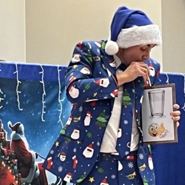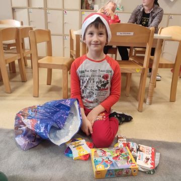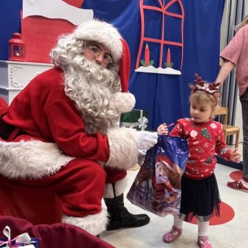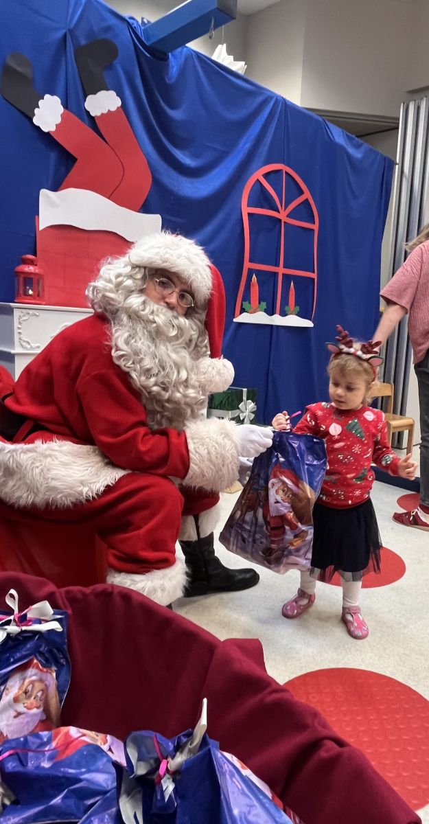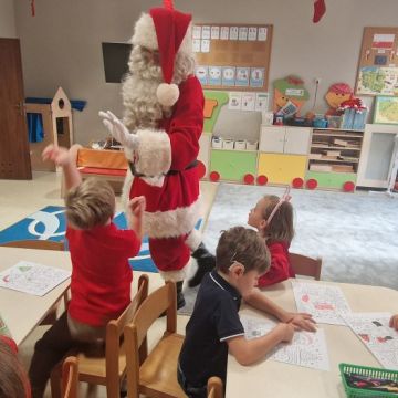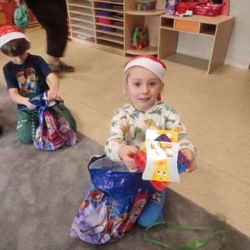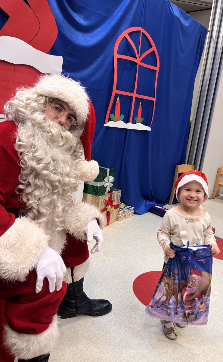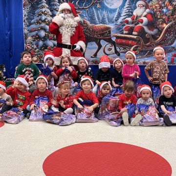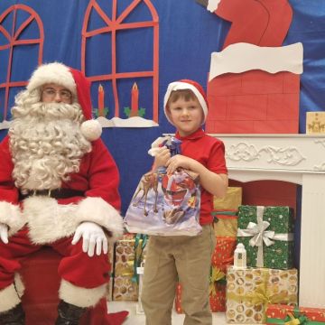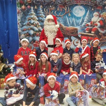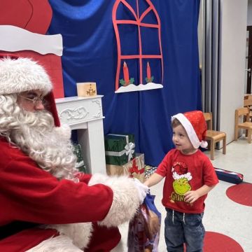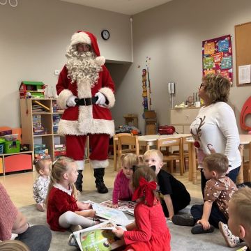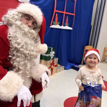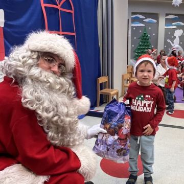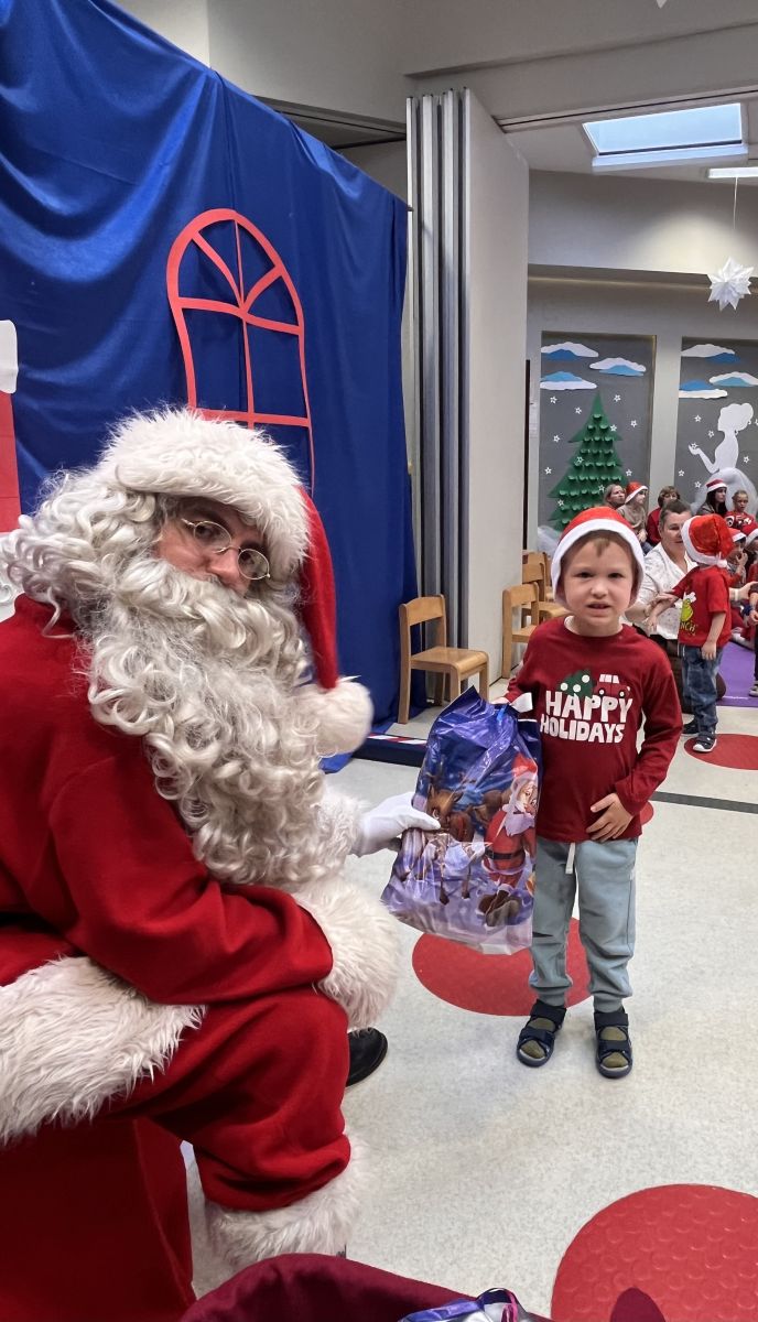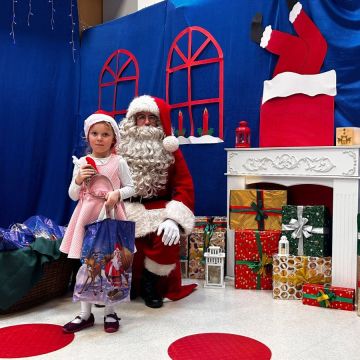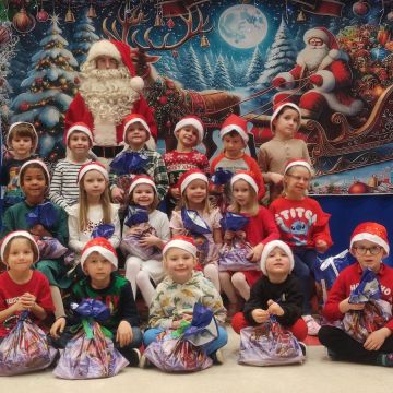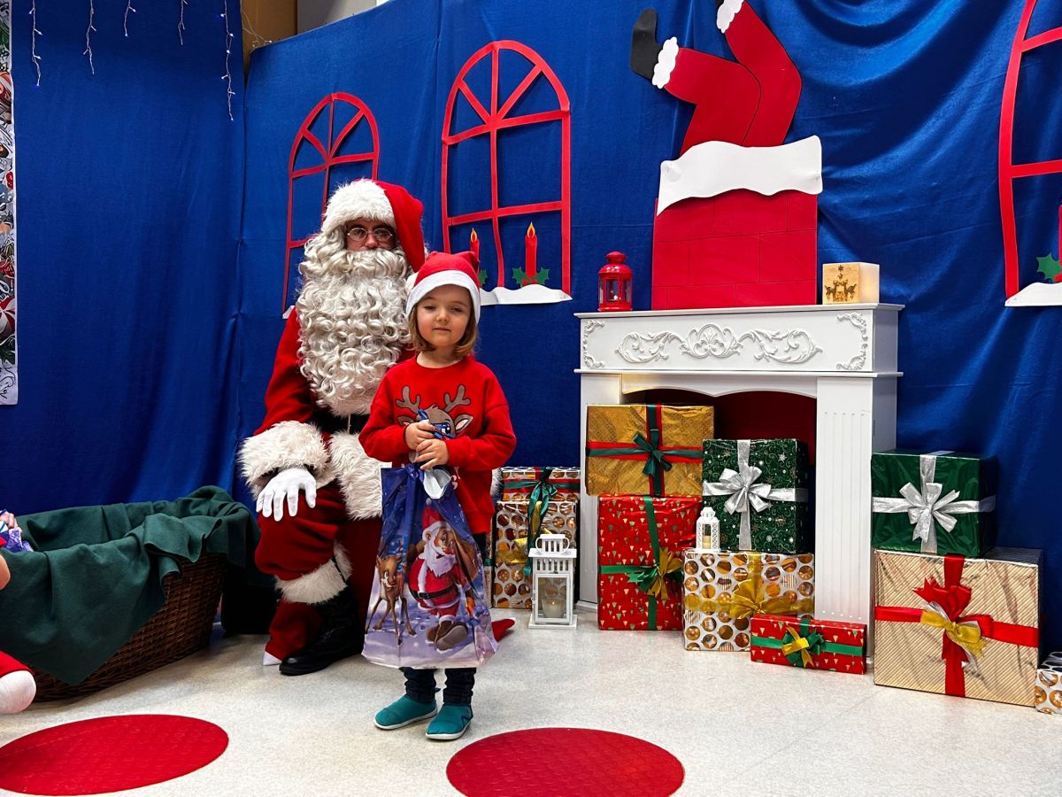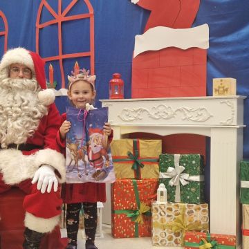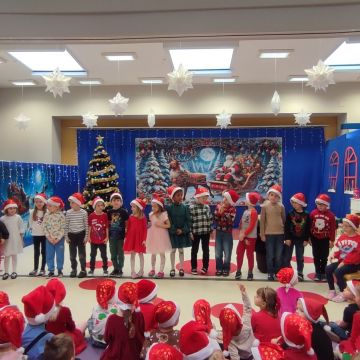 W dniu 5 grudnia 2025 r. odwiedził nas w przedszkolu wyjątkowy Gość, na którego czekaliśmy calusieńki rok. Zanim zadzwoniły dzwoneczki zwiastujące jego przybycie, Dzieci obejrzały spektakl pt. „Urlop Świętego Mikołaja” zaprezentowany przez Agencję „MAT-ART”. To pełne efektownych sztuczek i zabawnych scen przedstawienie opowiedziało o planowanym wypoczynku Świętego Mikołaja w ciepłych krajach. Nie mając jednak pewności, czy wszystkie prezenty dotrą do odbiorców na czas, Mikołaj postanowił zrezygnować z wyjazdu. Na spotkanie z naszym szanownym Gościem przygotowana była piękna dekoracja oraz wygodny tron, na którym mógł odpocząć po długiej podróży. Jak co roku, każda grupa odśpiewała dla Mikołaja tematyczną piosenkę, po czym odbyło się wręczanie Dzieciom paczek połączone z sesją fotograficzną. Święty Mikołaj przyznał, że wyjątkowo mu się u nas podobało i obiecał, że odwiedzi nas za rok. Razem z workiem pełnym podarków nasz Gość przywiózł nam dużo uśmiechu i magii Świąt Bożego Narodzenia.