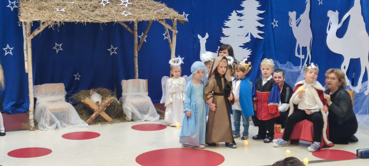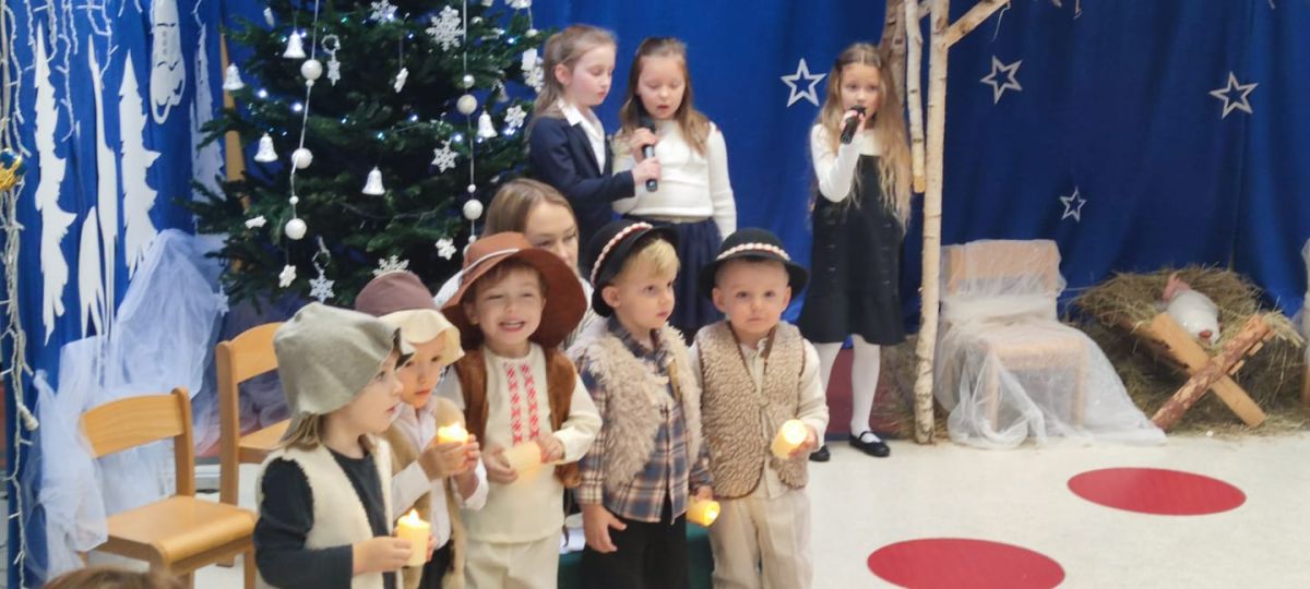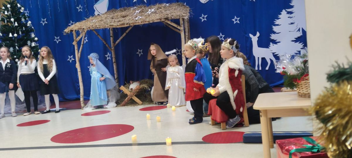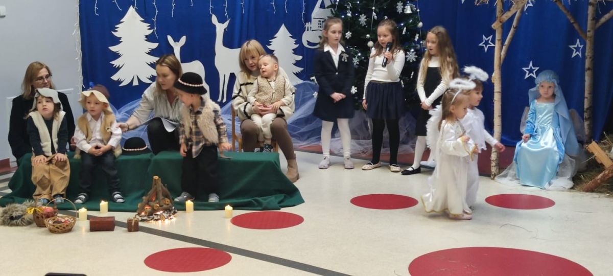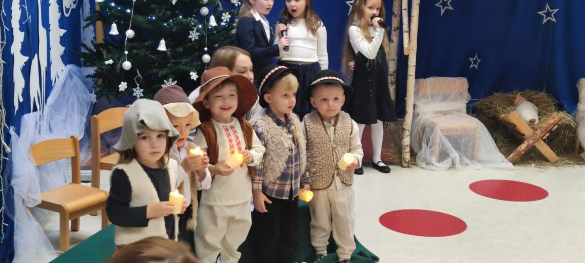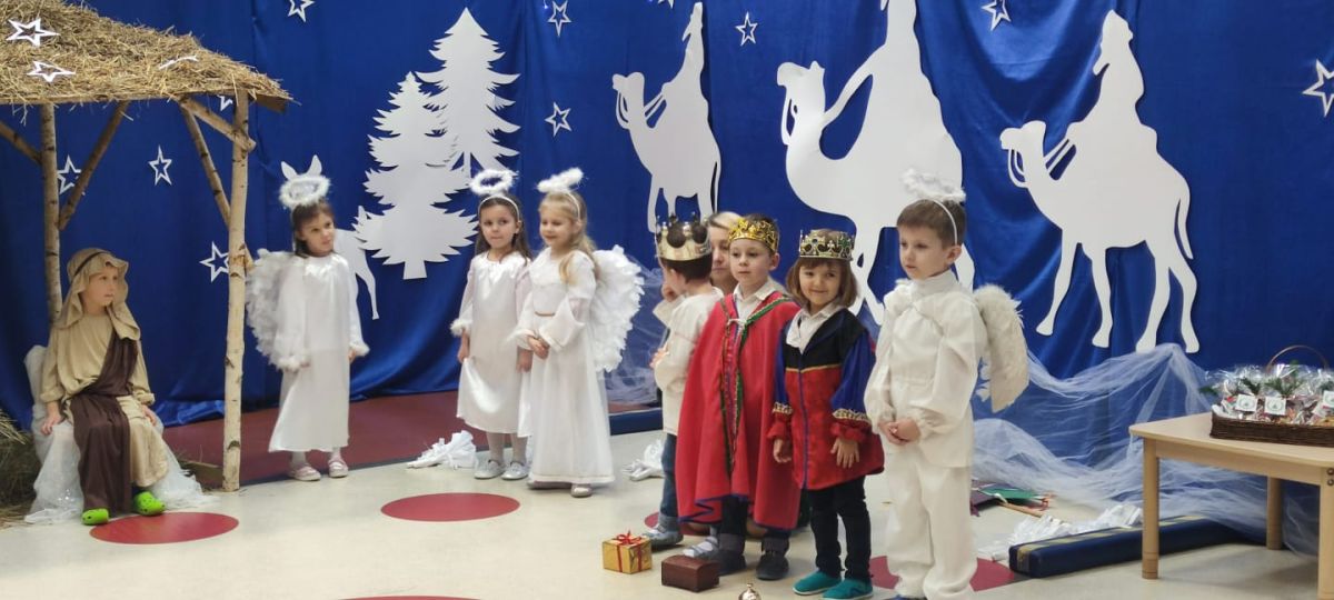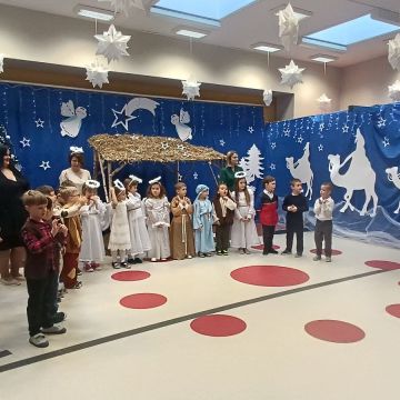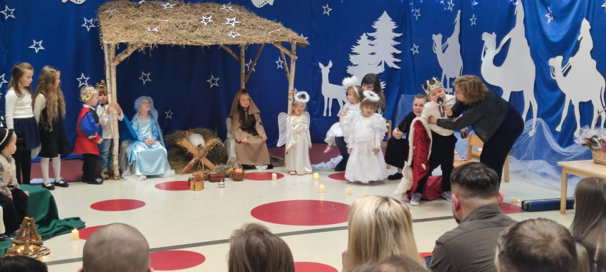 Święta Bożego Narodzenia są najbardziej rodzinnym, pełnym ciepła wydarzeniem, pozwalającym poczuć serdeczność i miłość wszystkich wokół. Jest to czas wspomnień, wzruszeń, czas pojednania z Bliskimi, czynienia dobra dla innych ludzi, jest to także czas refleksji nad przemijaniem i ulotnością dobrych chwil. Zarówno Dzieci jak i Dorośli z niecierpliwością oczekują na nadejście Świąt. Ten magiczny czas i cudowną atmosferę dało się odczuć również w naszym Przedszkolu. W dniach od 15 do 18 grudnia 2025r. Dzieci sprawiły radość swoim Bliskim przepięknymi i wzruszającymi przedstawieniami jasełkowymi. Każdego roku spektakle świąteczne mają inną, niepowtarzalną oprawę artystyczną. W tym roku zachwyciła wszystkich piękna w swojej prostocie śnieżnobiała scenografia, zaś ubrani w ozdobne stroje Trzej Królowie, skromni Pastuszkowie, dostojna Święta Rodzina, tańczące Aniołki i inne postaci budziły ciepłe emocje wśród zaproszonych Gości. Szopka z maleńkim Jezusem na tle postaci Aniołków i Trzech Króli nadała tym wyjątkowym spotkaniom uroczysty i nastrojowy klimat. Wspaniali aktorzy w pięknych kostiumach, występujący na tle scenografii ukazującej ludzi podążających do Betlejem, przenieśli nas do przełomowej chwili– narodzin Dzieciątka Jezus. Jasełka wprowadziły wszystkich w świąteczny nastrój, a Przedszkolaki swym pięknym występem podbiły serca Publiczności. Niejednej osobie zakręciła się łza w oku. Dźwięk kolęd i pastorałek uświadomił wszystkim, że Święta Bożego Narodzenia są już bardzo blisko. Występy były niezwykłym przeżyciem zarówno dla Aktorów, Rodziców, Nauczycieli jak i dla wszystkich zaproszonych Gości. Na zakończenie uroczystości Pani Dyrektor Jolanta Bieniek podziękowała Dzieciom za wspaniały występ, Nauczycielom i Kadrze Przedszkola za przygotowanie niezapomnianych, bardzo efektownych widowisk oraz złożyła wszystkim Rodzicom ciepłe i płynące z serca życzenia świąteczne i noworoczne. Aby tradycji stało się zadość, Rodzice otrzymali prezenty wykonane przez naszych przedszkolaków, które podkreśliły wagę świątecznych chwil. „Rodzinne” fotografie, serdeczne rozmowy i wzajemne życzenia były momentem podsumowującym ten wyjątkowy Dzień, który pozwolił wszystkim poczuć atmosferę zbliżających się Świat, pełną ciepła i radości.