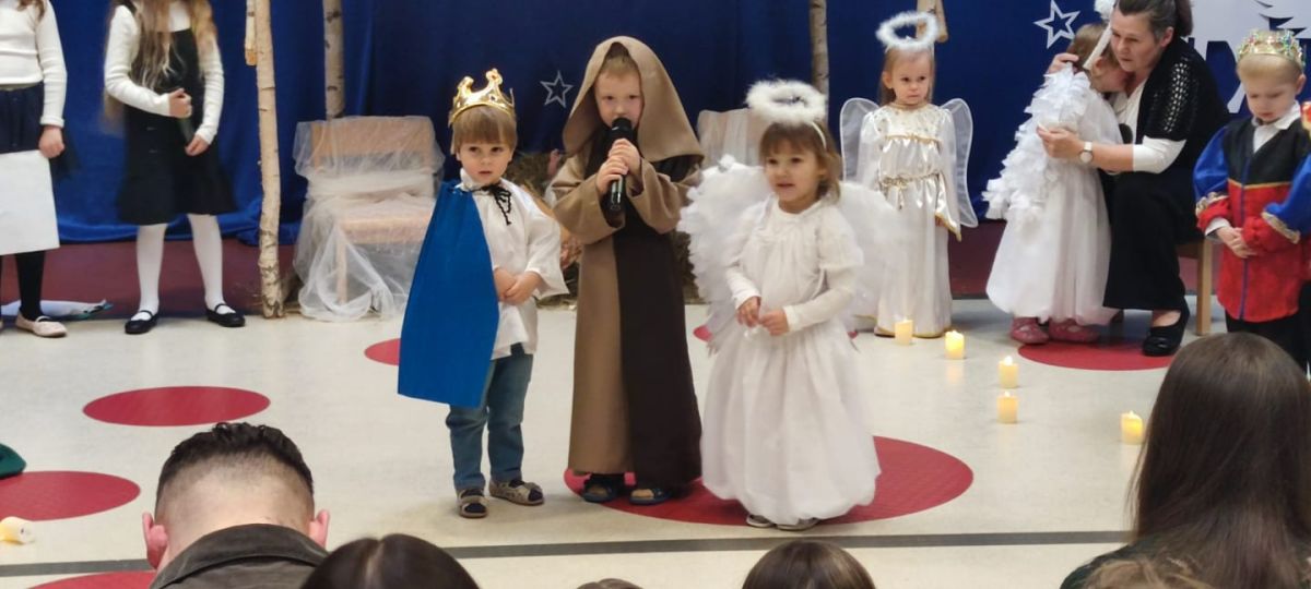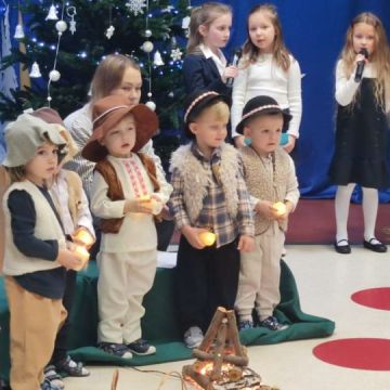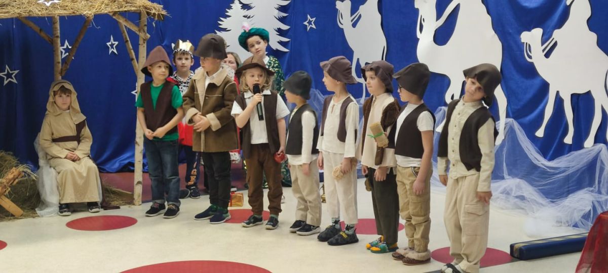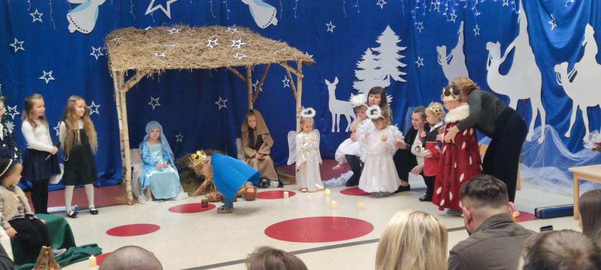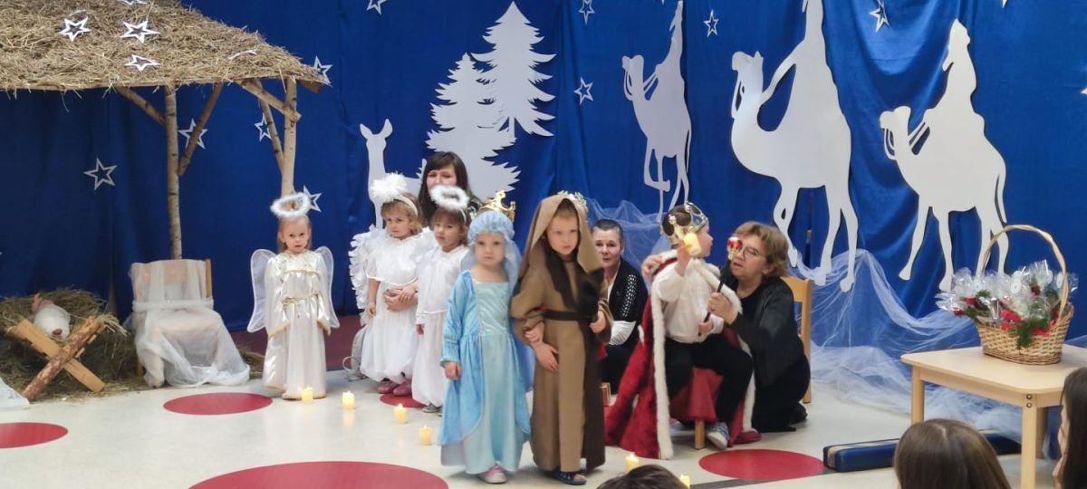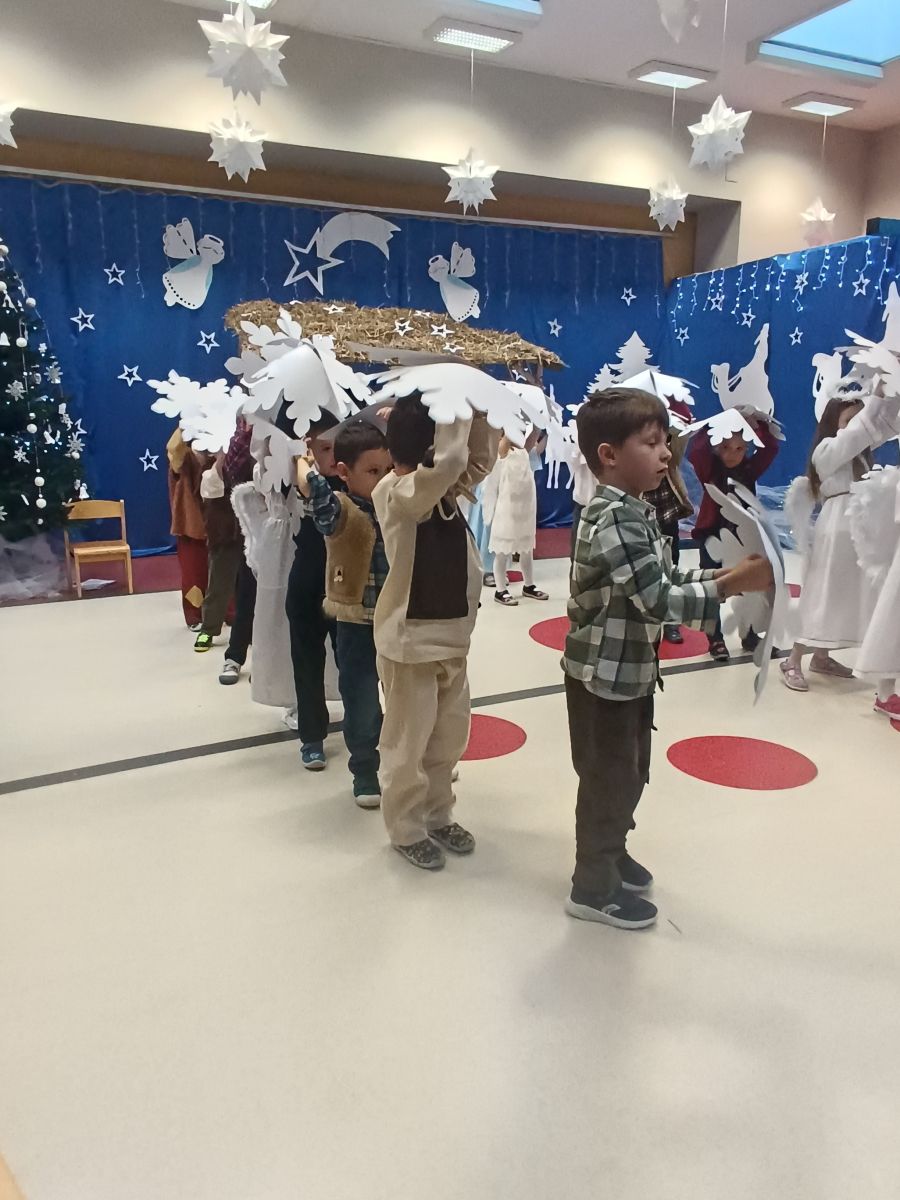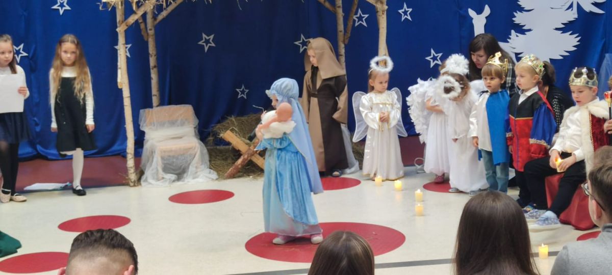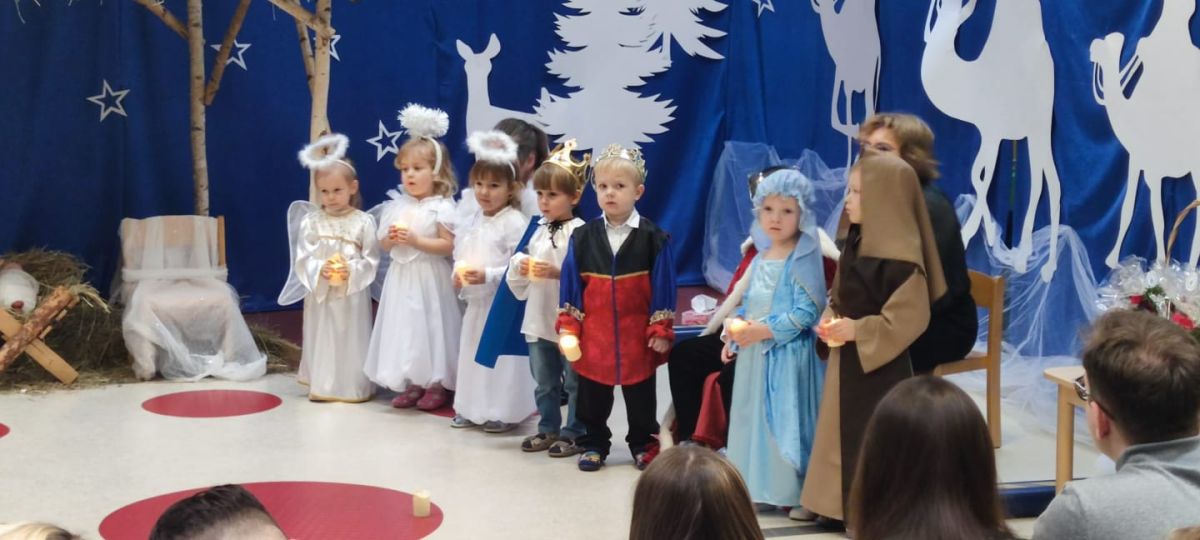 Święta Bożego Narodzenia są najbardziej rodzinnym, pełnym ciepła wydarzeniem, pozwalającym poczuć serdeczność i miłość wszystkich wokół. Jest to czas wspomnień, wzruszeń, czas pojednania z Bliskimi, czynienia dobra dla innych ludzi, jest to także czas refleksji nad przemijaniem i ulotnością dobrych chwil. Zarówno Dzieci jak i Dorośli z niecierpliwością oczekują na nadejście Świąt. Ten magiczny czas i cudowną atmosferę dało się odczuć również w naszym Przedszkolu. W dniach od 15 do 18 grudnia 2025r. Dzieci sprawiły radość swoim Bliskim przepięknymi i wzruszającymi przedstawieniami jasełkowymi. Każdego roku spektakle świąteczne mają inną, niepowtarzalną oprawę artystyczną. W tym roku zachwyciła wszystkich piękna w swojej prostocie śnieżnobiała scenografia, zaś ubrani w ozdobne stroje Trzej Królowie, skromni Pastuszkowie, dostojna Święta Rodzina, tańczące Aniołki i inne postaci budziły ciepłe emocje wśród zaproszonych Gości. Szopka z maleńkim Jezusem na tle postaci Aniołków i Trzech Króli nadała tym wyjątkowym spotkaniom uroczysty i nastrojowy klimat. Wspaniali aktorzy w pięknych kostiumach, występujący na tle scenografii ukazującej ludzi podążających do Betlejem, przenieśli nas do przełomowej chwili– narodzin Dzieciątka Jezus. Jasełka wprowadziły wszystkich w świąteczny nastrój, a Przedszkolaki swym pięknym występem podbiły serca Publiczności. Niejednej osobie zakręciła się łza w oku. Dźwięk kolęd i pastorałek uświadomił wszystkim, że Święta Bożego Narodzenia są już bardzo blisko. Występy były niezwykłym przeżyciem zarówno dla Aktorów, Rodziców, Nauczycieli jak i dla wszystkich zaproszonych Gości. Na zakończenie uroczystości Pani Dyrektor Jolanta Bieniek podziękowała Dzieciom za wspaniały występ, Nauczycielom i Kadrze Przedszkola za przygotowanie niezapomnianych, bardzo efektownych widowisk oraz złożyła wszystkim Rodzicom ciepłe i płynące z serca życzenia świąteczne i noworoczne. Aby tradycji stało się zadość, Rodzice otrzymali prezenty wykonane przez naszych przedszkolaków, które podkreśliły wagę świątecznych chwil. „Rodzinne” fotografie, serdeczne rozmowy i wzajemne życzenia były momentem podsumowującym ten wyjątkowy Dzień, który pozwolił wszystkim poczuć atmosferę zbliżających się Świat, pełną ciepła i radości.