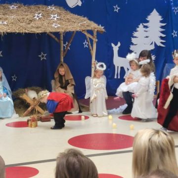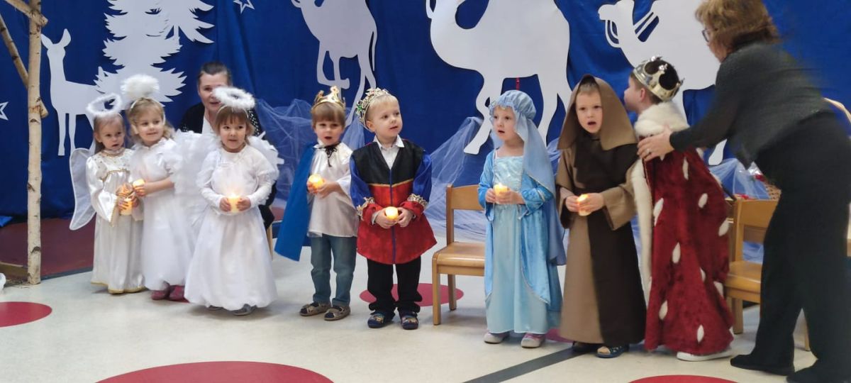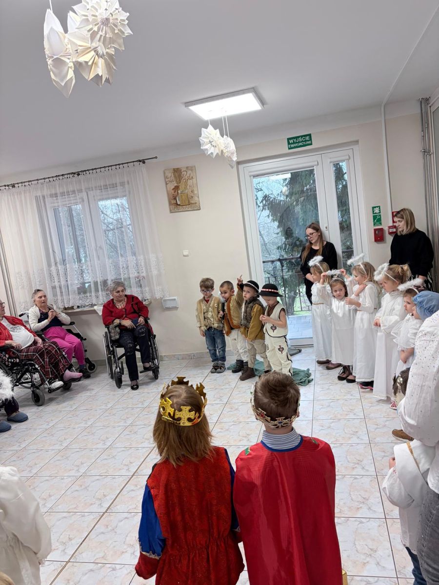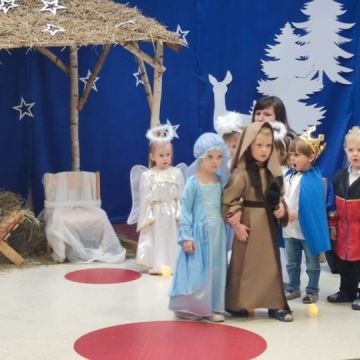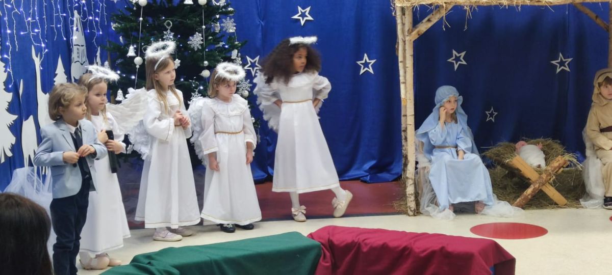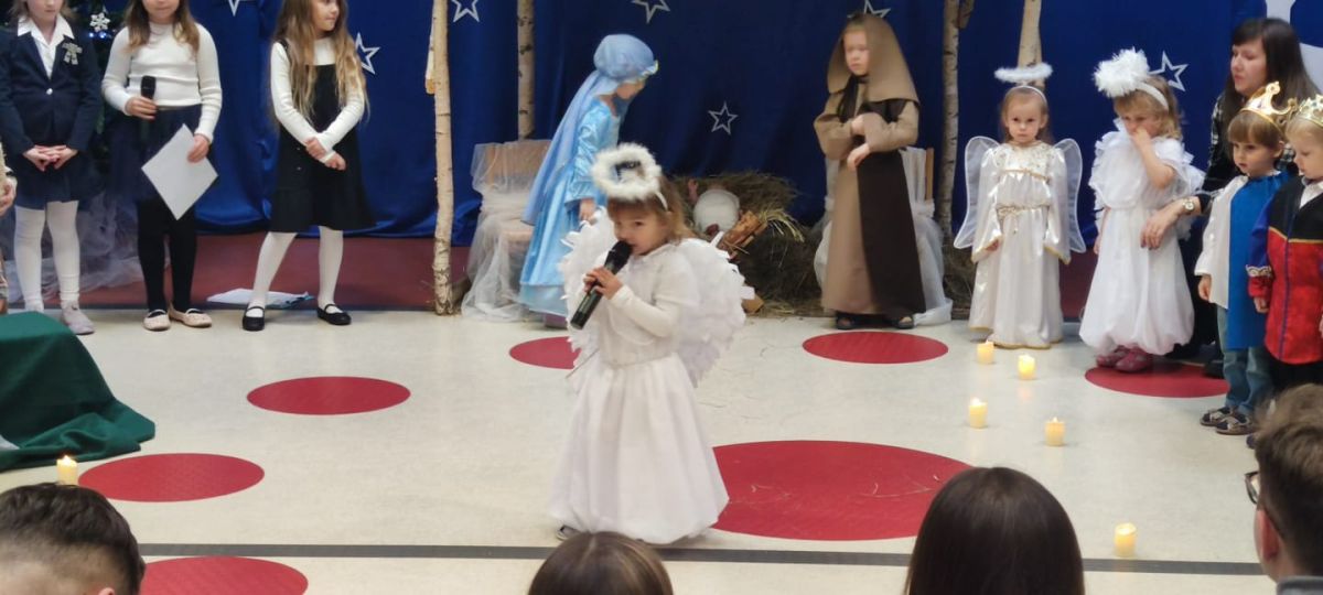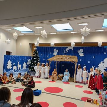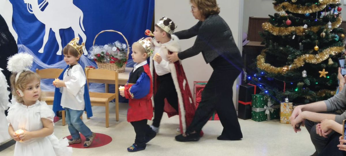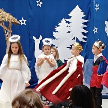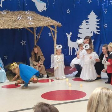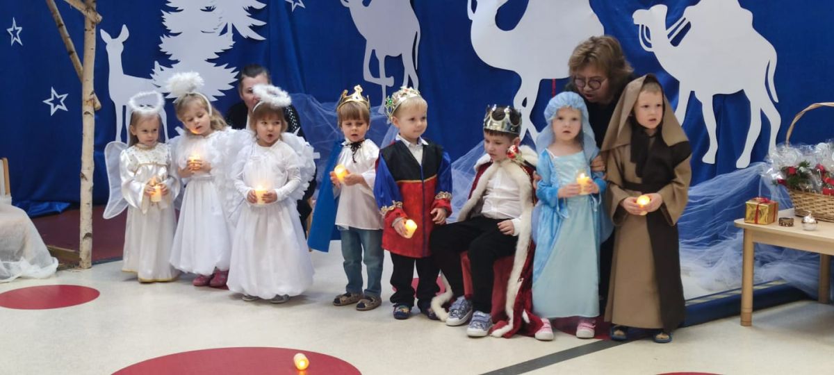 Święta Bożego Narodzenia są najbardziej rodzinnym, pełnym ciepła wydarzeniem, pozwalającym poczuć serdeczność i miłość wszystkich wokół. Jest to czas wspomnień, wzruszeń, czas pojednania z Bliskimi, czynienia dobra dla innych ludzi, jest to także czas refleksji nad przemijaniem i ulotnością dobrych chwil. Zarówno Dzieci jak i Dorośli z niecierpliwością oczekują na nadejście Świąt. Ten magiczny czas i cudowną atmosferę dało się odczuć również w naszym Przedszkolu. W dniach od 15 do 18 grudnia 2025r. Dzieci sprawiły radość swoim Bliskim przepięknymi i wzruszającymi przedstawieniami jasełkowymi. Każdego roku spektakle świąteczne mają inną, niepowtarzalną oprawę artystyczną. W tym roku zachwyciła wszystkich piękna w swojej prostocie śnieżnobiała scenografia, zaś ubrani w ozdobne stroje Trzej Królowie, skromni Pastuszkowie, dostojna Święta Rodzina, tańczące Aniołki i inne postaci budziły ciepłe emocje wśród zaproszonych Gości. Szopka z maleńkim Jezusem na tle postaci Aniołków i Trzech Króli nadała tym wyjątkowym spotkaniom uroczysty i nastrojowy klimat. Wspaniali aktorzy w pięknych kostiumach, występujący na tle scenografii ukazującej ludzi podążających do Betlejem, przenieśli nas do przełomowej chwili– narodzin Dzieciątka Jezus. Jasełka wprowadziły wszystkich w świąteczny nastrój, a Przedszkolaki swym pięknym występem podbiły serca Publiczności. Niejednej osobie zakręciła się łza w oku. Dźwięk kolęd i pastorałek uświadomił wszystkim, że Święta Bożego Narodzenia są już bardzo blisko. Występy były niezwykłym przeżyciem zarówno dla Aktorów, Rodziców, Nauczycieli jak i dla wszystkich zaproszonych Gości. Na zakończenie uroczystości Pani Dyrektor Jolanta Bieniek podziękowała Dzieciom za wspaniały występ, Nauczycielom i Kadrze Przedszkola za przygotowanie niezapomnianych, bardzo efektownych widowisk oraz złożyła wszystkim Rodzicom ciepłe i płynące z serca życzenia świąteczne i noworoczne. Aby tradycji stało się zadość, Rodzice otrzymali prezenty wykonane przez naszych przedszkolaków, które podkreśliły wagę świątecznych chwil. „Rodzinne” fotografie, serdeczne rozmowy i wzajemne życzenia były momentem podsumowującym ten wyjątkowy Dzień, który pozwolił wszystkim poczuć atmosferę zbliżających się Świat, pełną ciepła i radości.