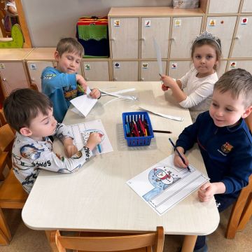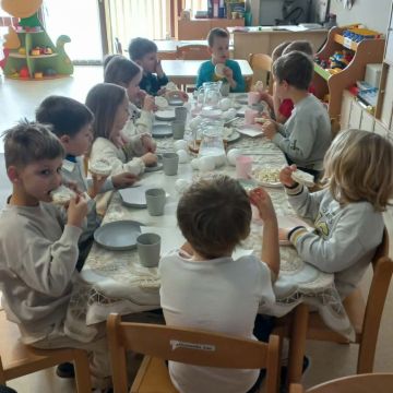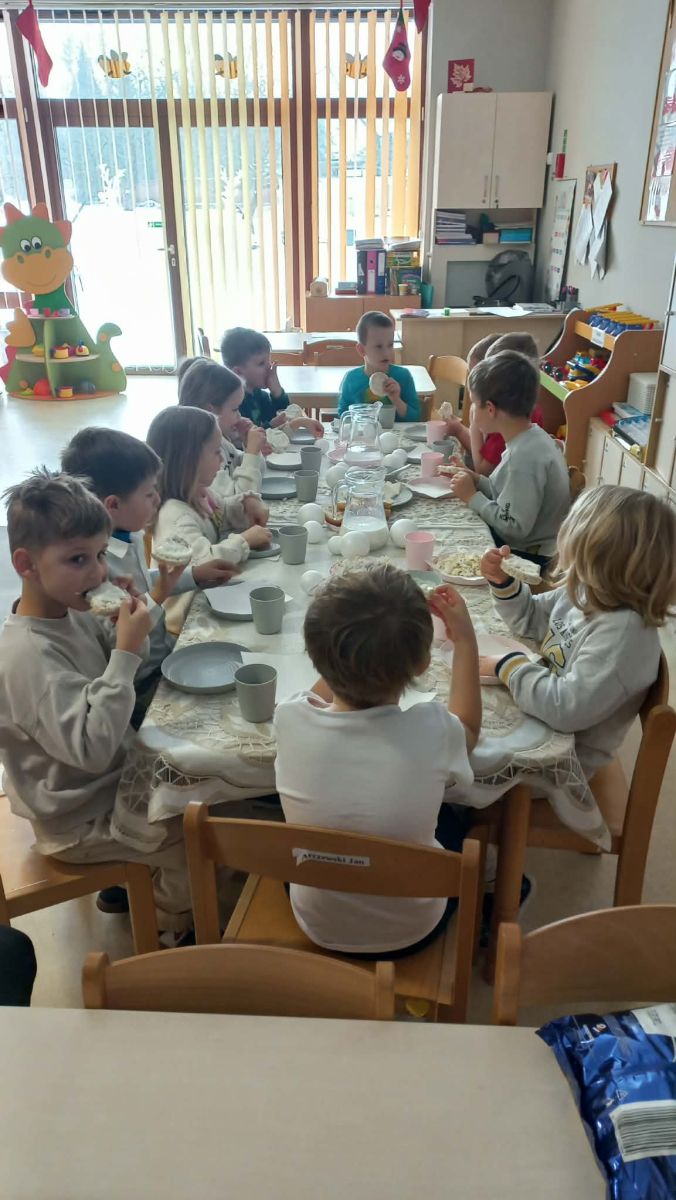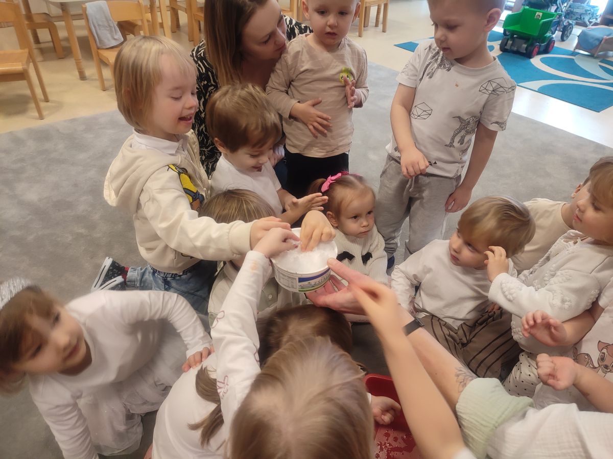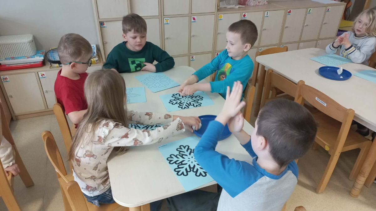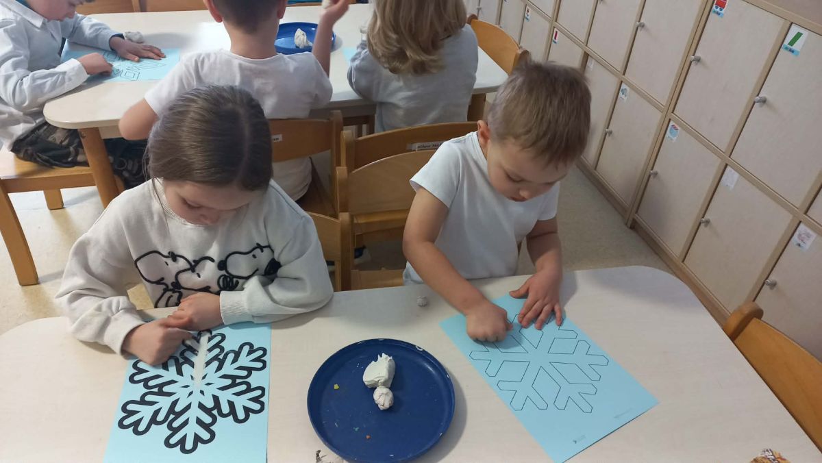 7.01.2026r. w naszym przedszkolu miał miejsce dzień pełen integracyjnych zabaw i aktywności związanych z białym kolorem tzw. „Biały Dzień”. Dzieci ubrane na biało wykonywały prace plastyczne np. malowały farbami, czy wyklejały plasteliną śnieżynki, bałwanki. Słuchały bajek o zimie, rozwiązywały zagadki, dotyczące aktualnej pory roku, wyszukiwały białe przedmioty w sali, uczyły się o produktach spożywczych w tym kolorze. Oczywiście nie zabrakło zabaw ruchowych i tańców przy muzyce, inspirowanych opowieścią o śnieżynkach, bałwankach, zimie. Dzieciaki bawiąc się w „białą krainę” degustowały białe przekąski (serki, jogurty, chrupki, mleko, popcorn itp.). Dzień był pełen radości, nauki i wspólnej zabawy. Przedszkolaki utrwaliły wiedzę o tym, co kojarzy się z białym kolorem, rozwinęły wyobraźnię, kreatywność i przede wszystkim miały okazję do integracji i współdziałania.