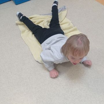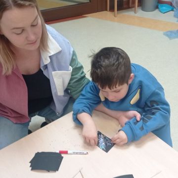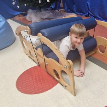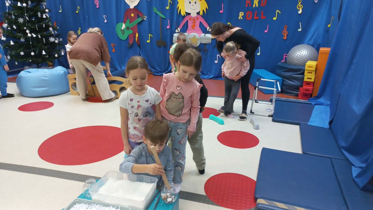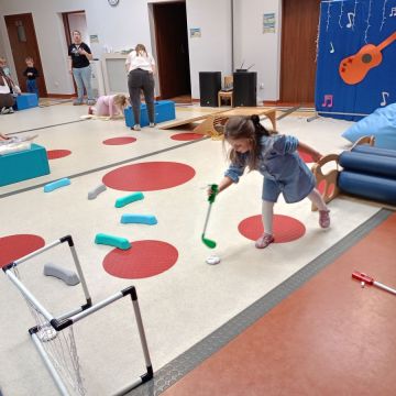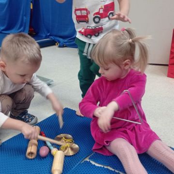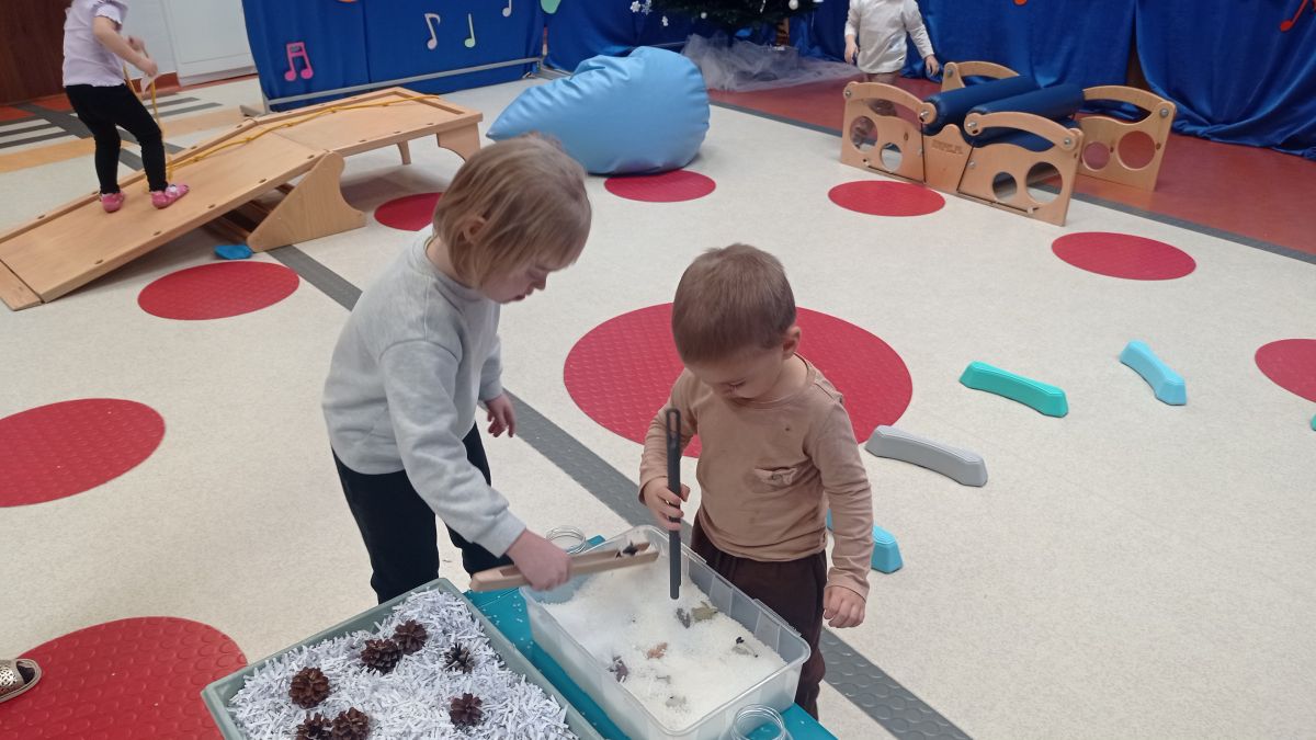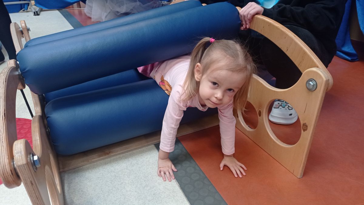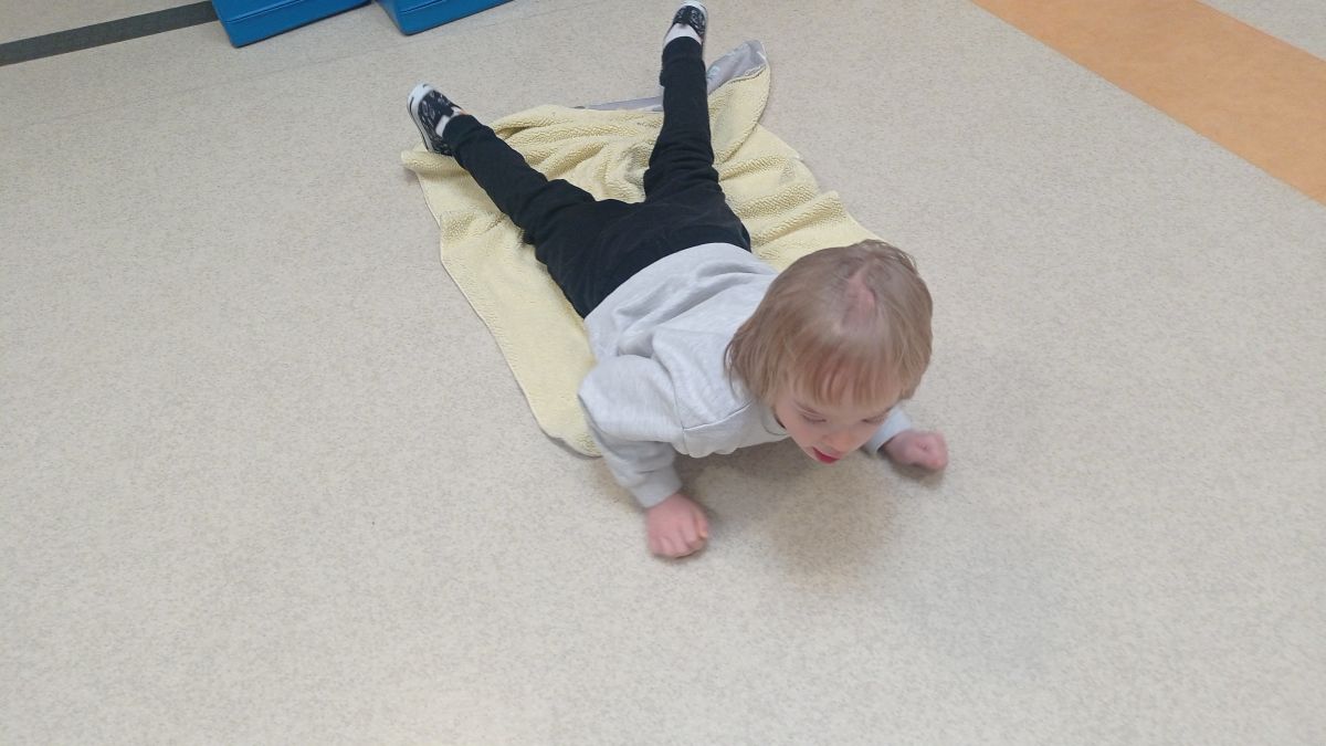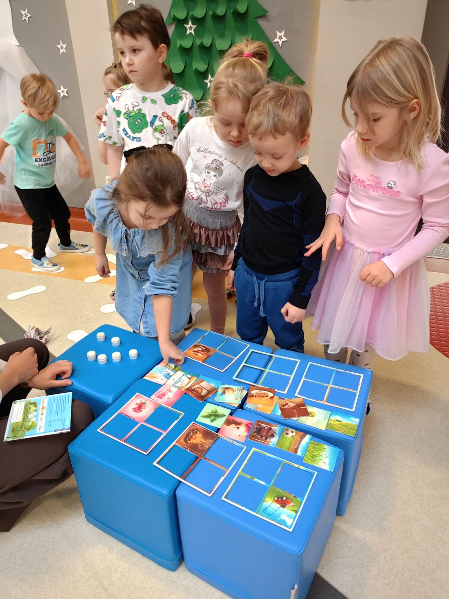 W dniu 21 stycznia 2026 roku w Naszym Przedszkolu odbyły się zajęcia sensoryczno – motoryczne pod nazwą „Las zimą”. Celem tych zajęć była stymulacja polisensoryczna, czyli dostarczanie różnorodnych bodźców sensorycznych: wzrokowych, słuchowych, dotykowych, proprioceptywnych, węchowych oraz planowania motorycznego, aby pobudzić zmysły, rozwinąć percepcje oraz umiejętności poznawcze. Zajęcia były dostosowane do potrzeb i możliwości dziecka w wieku przedszkolnym. Proponowane aktywności sprawiały, że dzieci poznawały i doświadczały poprzez zmysły: wzroku (rzucanie do celu kulkami zrobionymi z gazety, układanie puzzli zgodnych z rozpoznanym zapachem, uzupełnianie kółek woreczkami w tym samym kolorze, trafianie kijem hokejowym w krążek, omijanie napotkanych przeszkód, wyszukiwanie zwierzątek w sztucznym śniegu z wykorzystaniem szczypiec, wybieranie szyszek z masy papierowej, wydrapywanie śnieżynki z użyciem drewnianego patyczka); słuchu: (słuchanie opowiadania o tematyce „przygoda w lesie”, wystukiwanie odgłosów zwierząt na instrumentach muzycznych: janczary, dzwonki, drewienka, jajeczko, trójkąt, grzechotka, tamburyno); dotyku: (przesuwanie się na kocu z punktu A do punktu B, siad w siadzie skrzyżnym na berecie sensorycznym, rozpoznawanie ciężaru woreczków, wchodzenie na pochylnię z użyciem liny przy ruchach naprzemiennych rąk, przejście przez dużą i miękką pufę, praca z użyciem szczypiec, różnicowanie dotykiem: szyszki, papier, figurki zwierząt, sztuczny śnieg, wydrapywanki, budowanie igloo z użyciem pudełek w folii aluminiowej oraz dużej foli bąbelkowej); węchu: (rozpoznawanie zapachów: róża, jabłko, mięta, trawa, dym, mydło); planowania motorycznego: (pokonywanie złożonego toru przeszkód, budowanie igloo z użyciem pudełek w folii aluminiowej oraz folii bąbelkowej – praca w grupie, przejście po wyznaczonej trasie – tropem zwierząt leśnych i rzucanie do celu); propriocepcji: ( przeciąganie się na kocu na twardym podłożu, przeskakiwanie przez przeszkody, przejście po pufie wypełnionej granulatem, przeciśnięcie się przez maglownicę, ugniatanie kulek z gazety).