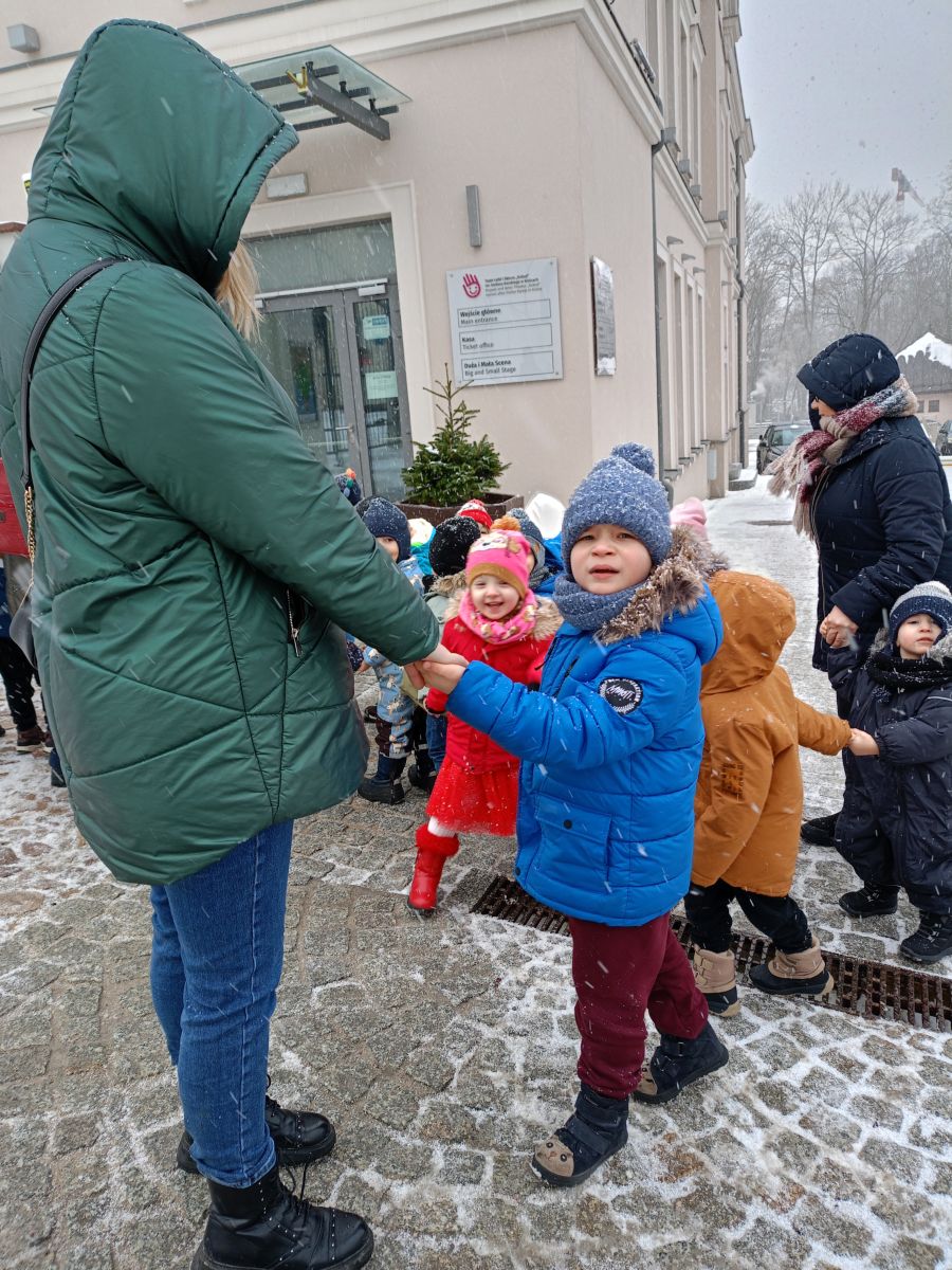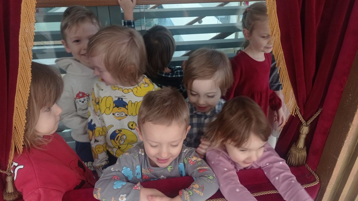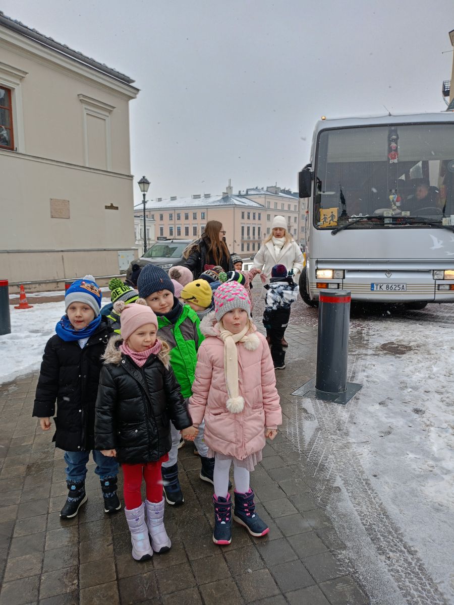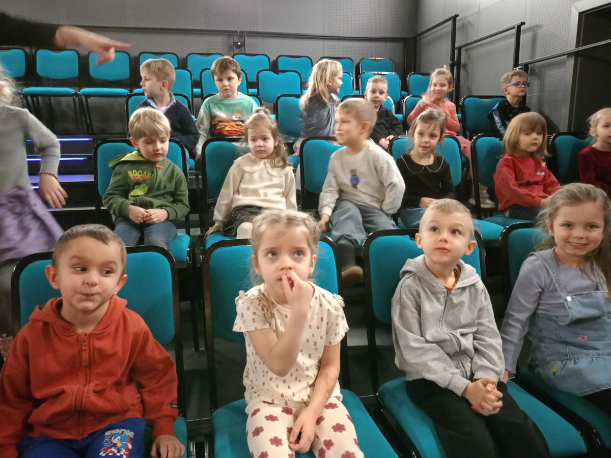 W dniach 17 – 18 lutego 2026r. nasze przedszkolaki wybrały się na wycieczkę do Teatru Lalki i Aktora „Kubuś” w Kielcach, gdzie obejrzały niezwykle ciekawy i zabawny spektakl pt. „Misiaczek”, reżyserem sztuki jest Anna Nowicka, tekst napisała Marta Guśniowska. Przedstawienie od pierwszej chwili oczarowało małych widzów. Mały Misiaczek, który nie mógł zasnąć niesamowicie bawił publiczność. Dzieci wspólnie z aktorami śpiewały mu kołysanki, podpowiadały jak tulić i lulać misia. Wokół misia zgromadziły się leśne zwierzęta, które opowiadały mu jak poradzić sobie z bezsennością, ale nic nie pomagało. Dodatkowo barwne kostiumy, ciekawe rekwizyty, wesoła muzyka i pełna humoru gra aktorów sprawiły, że dzieci śmiały się, klaskały i z zapartym tchem śledziły losy Misiaczka. Poznały także las jako dom. Sztuka niosła przesłanie, które uświadomiło dzieciom jak zachowywać się w lesie oraz jak dbać o las. Dzieci żywo reagowały na to, co działo się na scenie – razem z aktorami przeżywały losy bohaterów. W drodze powrotnej długo jeszcze wspominały najśmieszniejsze momenty spektaklu. Wyjazd do teatru był wspaniałą przygodą, która dostarczyła dzieciom wielu radosnych emocji i pozwoliła im przenieść się w magiczny świat bajki i teatru.