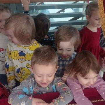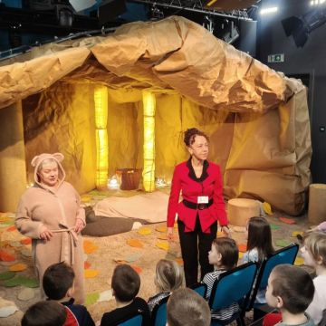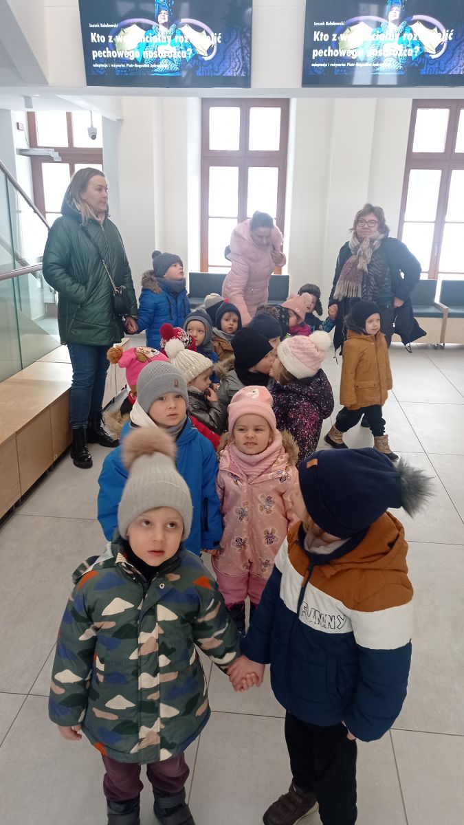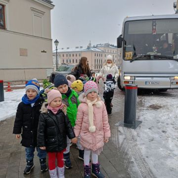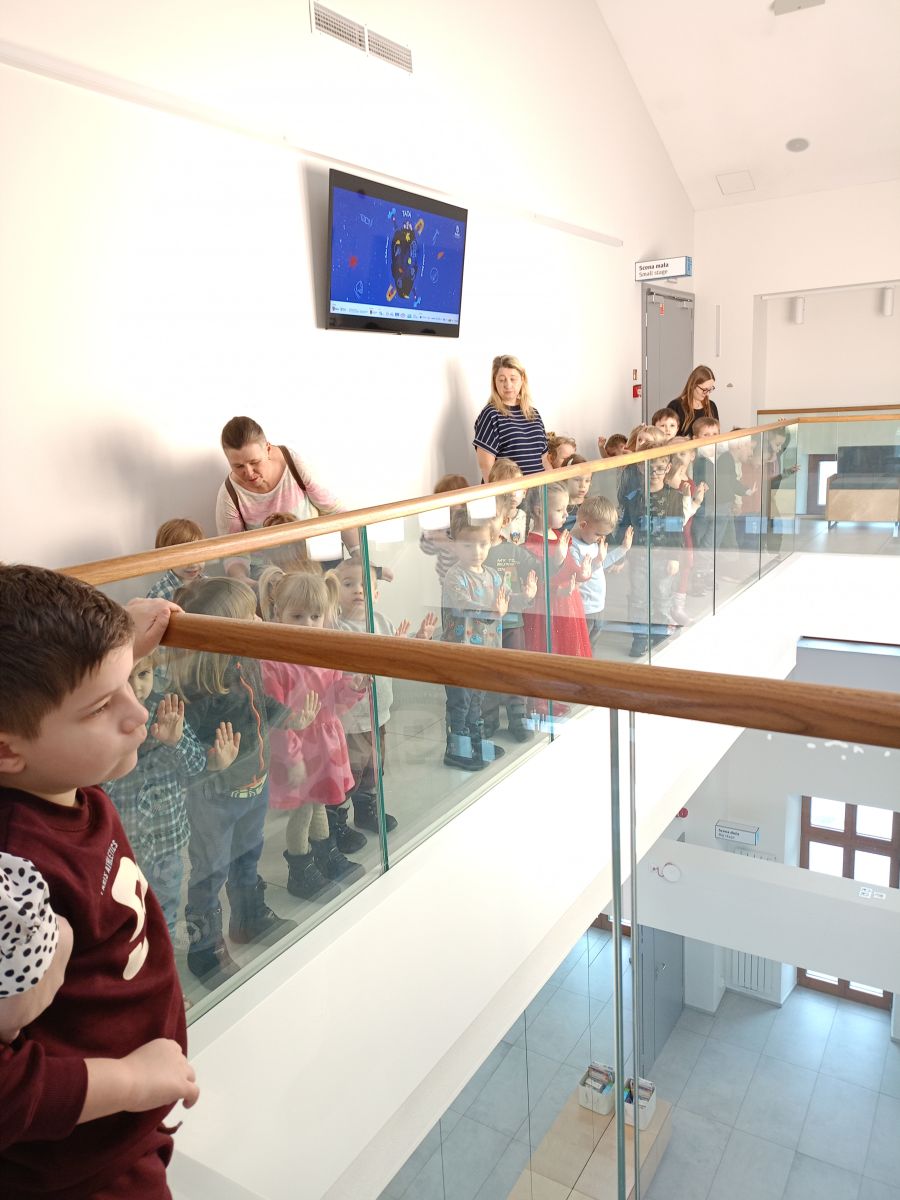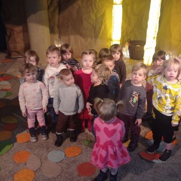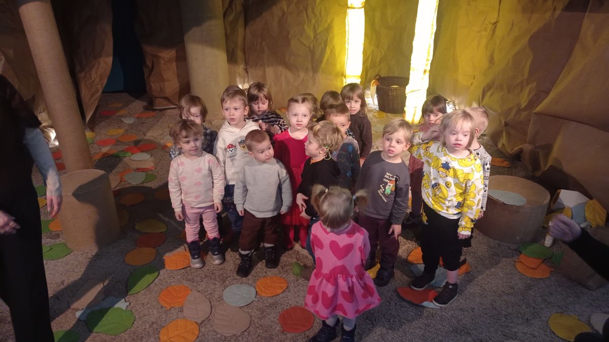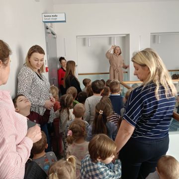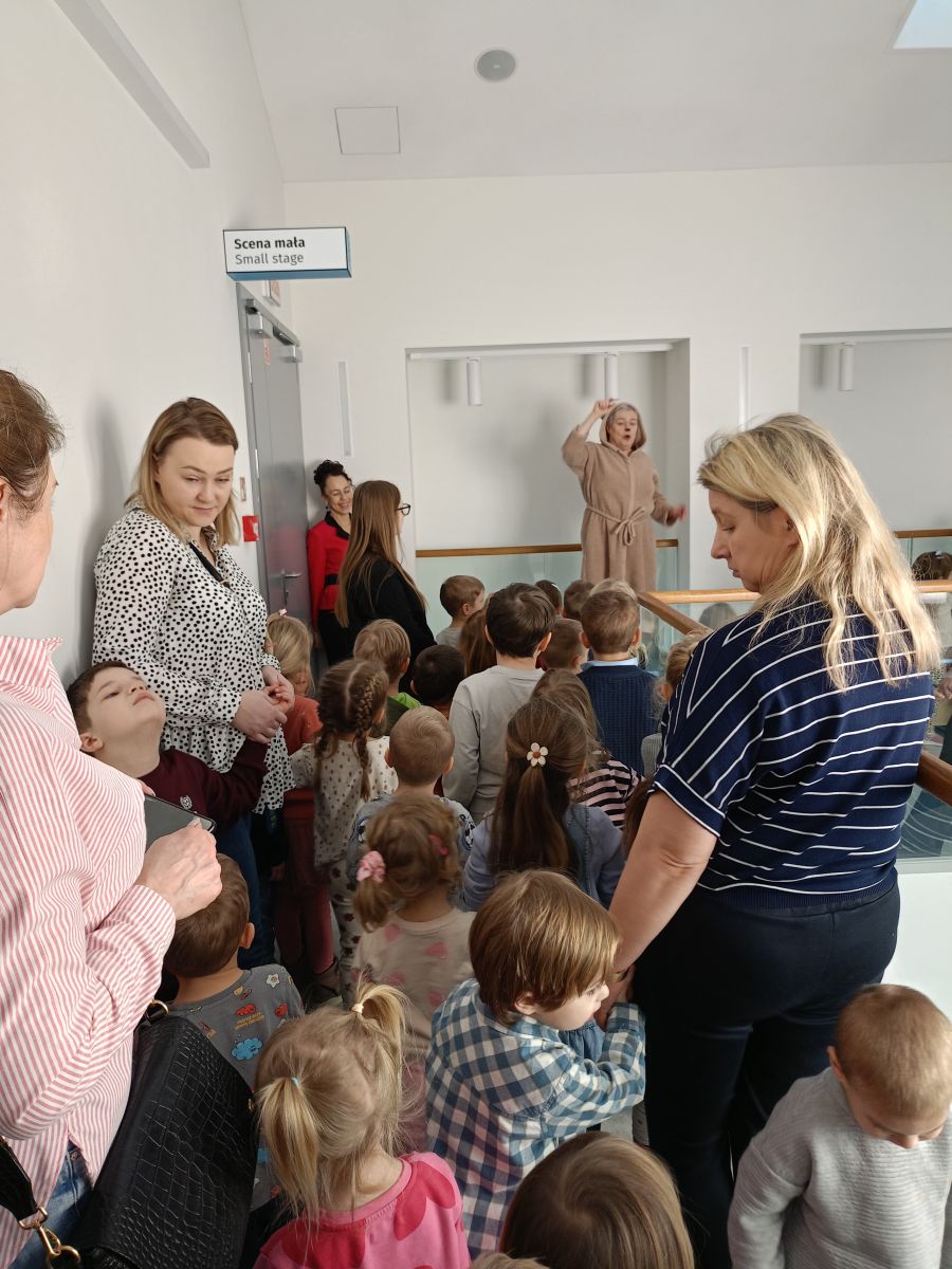 W dniach 17 – 18 lutego 2026r. nasze przedszkolaki wybrały się na wycieczkę do Teatru Lalki i Aktora „Kubuś” w Kielcach, gdzie obejrzały niezwykle ciekawy i zabawny spektakl pt. „Misiaczek”, reżyserem sztuki jest Anna Nowicka, tekst napisała Marta Guśniowska. Przedstawienie od pierwszej chwili oczarowało małych widzów. Mały Misiaczek, który nie mógł zasnąć niesamowicie bawił publiczność. Dzieci wspólnie z aktorami śpiewały mu kołysanki, podpowiadały jak tulić i lulać misia. Wokół misia zgromadziły się leśne zwierzęta, które opowiadały mu jak poradzić sobie z bezsennością, ale nic nie pomagało. Dodatkowo barwne kostiumy, ciekawe rekwizyty, wesoła muzyka i pełna humoru gra aktorów sprawiły, że dzieci śmiały się, klaskały i z zapartym tchem śledziły losy Misiaczka. Poznały także las jako dom. Sztuka niosła przesłanie, które uświadomiło dzieciom jak zachowywać się w lesie oraz jak dbać o las. Dzieci żywo reagowały na to, co działo się na scenie – razem z aktorami przeżywały losy bohaterów. W drodze powrotnej długo jeszcze wspominały najśmieszniejsze momenty spektaklu. Wyjazd do teatru był wspaniałą przygodą, która dostarczyła dzieciom wielu radosnych emocji i pozwoliła im przenieść się w magiczny świat bajki i teatru.