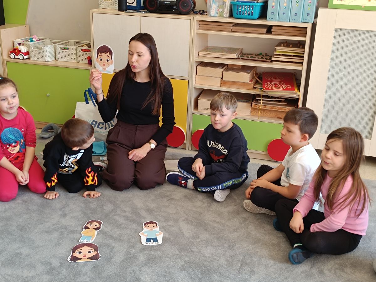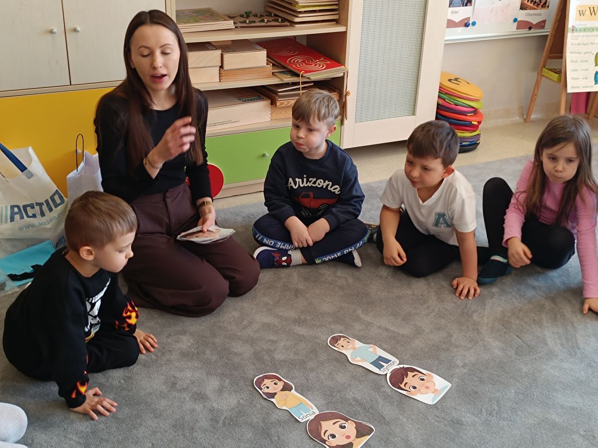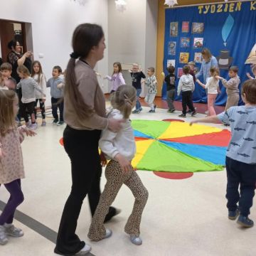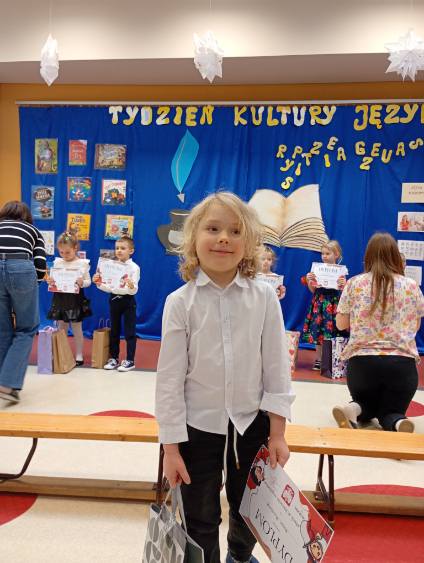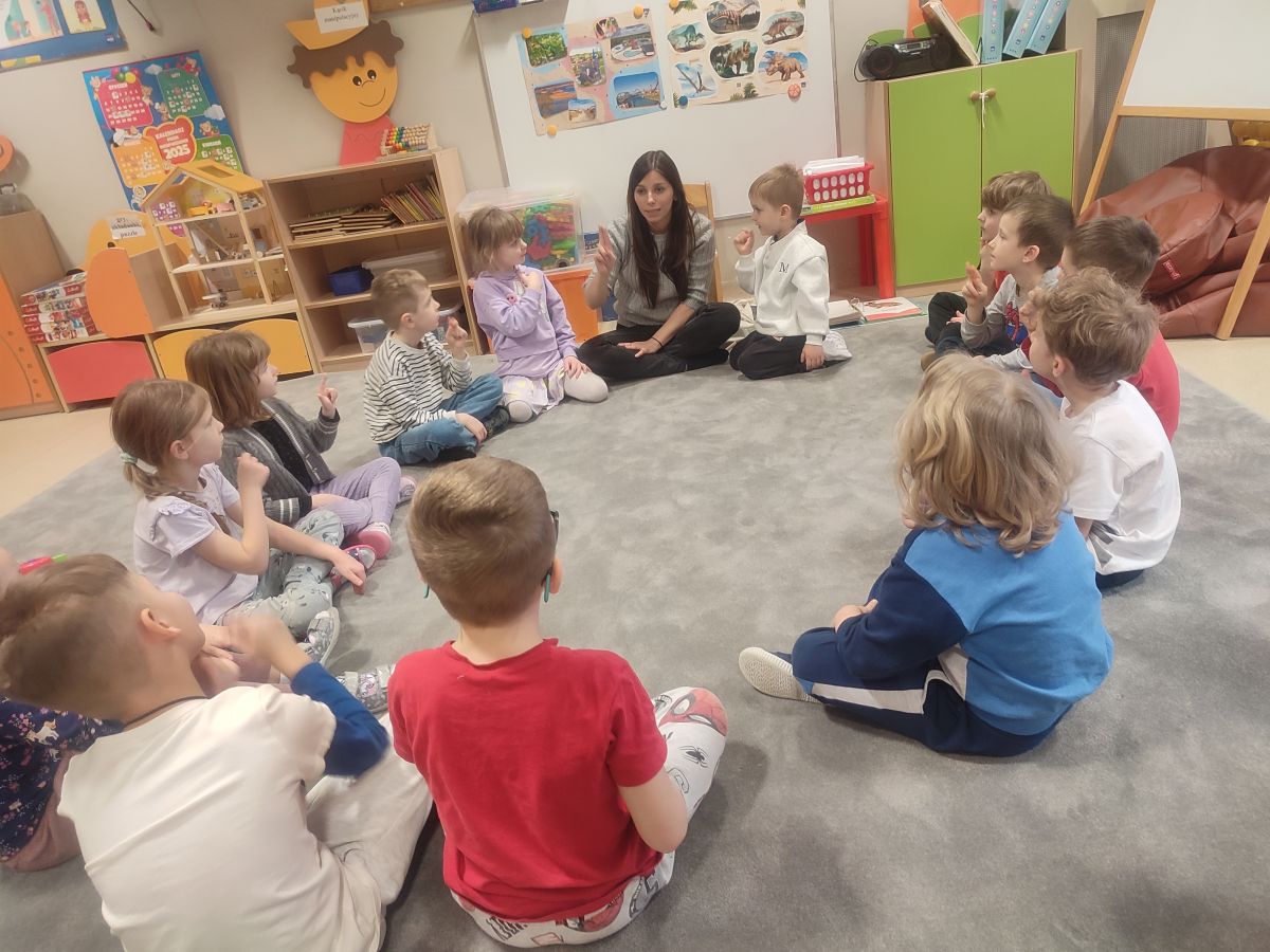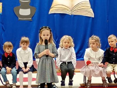 W dniach 23 - 27 lutego 2026r. obchodziliśmy w naszym przedszkolu Tydzień Kultury Języka. Celem akcji jest szerzenie świadomości językowej, propagowanie poprawnej polszczyzny oraz kształtowanie kultury słowa w różnych sytuacjach życiowych. TKJ zainaugurowaliśmy Międzygrupowym Konkursem Recytatorskim pt. „Mały Patriota” przygotowanym i prowadzonym przez p. Jolę Detkę. Jury oceniało nie tylko poziom pamięciowego opanowania tekstu, ale również dykcję, estetykę artykulacji, interpretację oraz ogólne wrażenie artystyczne. Wszyscy uczestnicy otrzymali nagrody: dyplomy i ciekawe upominki. Wśród nich byli: Klara W., Maksymilian N., Nikodem S. z Biedronek; Adam M. i Julian M. z Muchomorków; Łucja K., Zuzanna B., Leon L. z Motylków oraz Wiktor M. z Pszczółek. Wyróżnienie specjalne otrzymała Wiktoria D. z grupy IV. Następnego dnia dzieci zostały zaproszone do „kina” na „bajki z kliszy”. W zaciemnionej sali obejrzały obrazki ukryte na rolkach kliszy i wyświetlane z użyciem specjalnego projektora. Po obiedzie odwiedziła nas mama Tymona i Franka - p. Beata Wypych, która we wszystkich grupach zaprezentowała tajniki języka migowego. Przedszkolaki z uwagą słuchały wyjaśnień dotyczących znaczenia znaków migowych i chętnie je powtarzały. W środę dzieci uczestniczyły w zajęciach edukacyjnych z panią pedagog Pauliną Dudzic, podczas których rozmawiały o czystości języka ojczystego, a także o konieczności dbania o kulturę osobistą na co dzień. Przy pomocy „Bardzo kulturalnej piosenki” utrwaliły ważne wiadomości na temat kulturalnego wypowiadania się i używania czarodziejskich słów: proszę, przepraszam, dziękuję. 26 lutego odbyły się warsztaty logopedyczne. Podczas spotkania z logopedą p. Anitą Małek dzieci miały okazję doskonalić sprawność narządów mowy poprzez ćwiczenia buzi i języka, co wspiera prawidłową artykulację i wyrazistość mowy. Przedszkolaki rozwijały także słuch fonematyczny oraz utrwalały prawidłowy tor oddechowy. Zajęcia zakończyły się wesołą zabawą logorytmiczną wspierającą poczucie rytmu i koordynację wzrokowo - ruchowo - słuchową. Zapraszamy do obejrzenia galerii zdjęć.