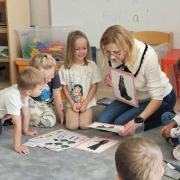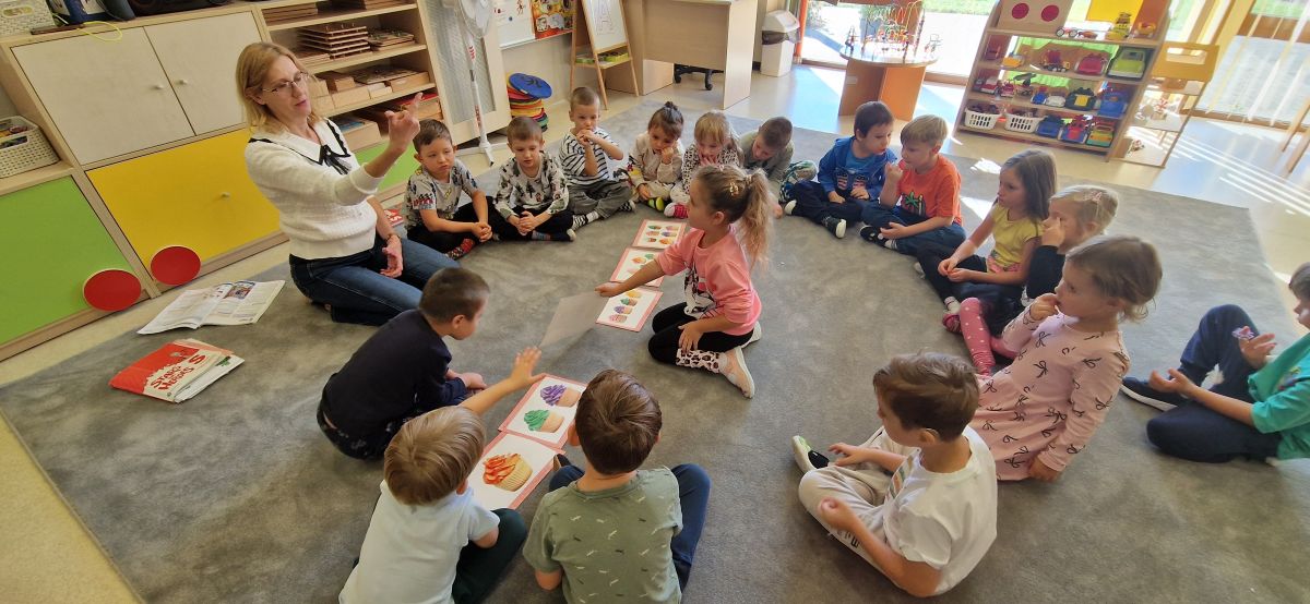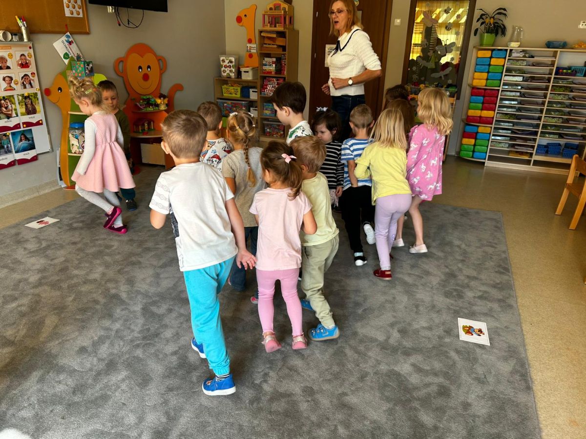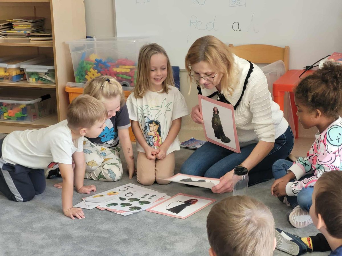W celu przyswojenia zaplanowanych treści Nauczyciel wykorzystuje różnorodne środki dydaktyczne t j. plansze edukacyjne, maty, gry dydaktyczne, środki AUDIO i VIDEO. Treści proponowane do realizacji na zajęciach obejmują następujące kręgi tematyczne: poznawanie siebie i otoczenia, rodzina, dom, święta państwowe i okolicznościowe, kolory, liczby, części ciała, ubiór, pogoda, zwierzęta na farmie, dzikie zwierzęta, środki transportu, owoce, warzywa, zabawki, wakacje.
